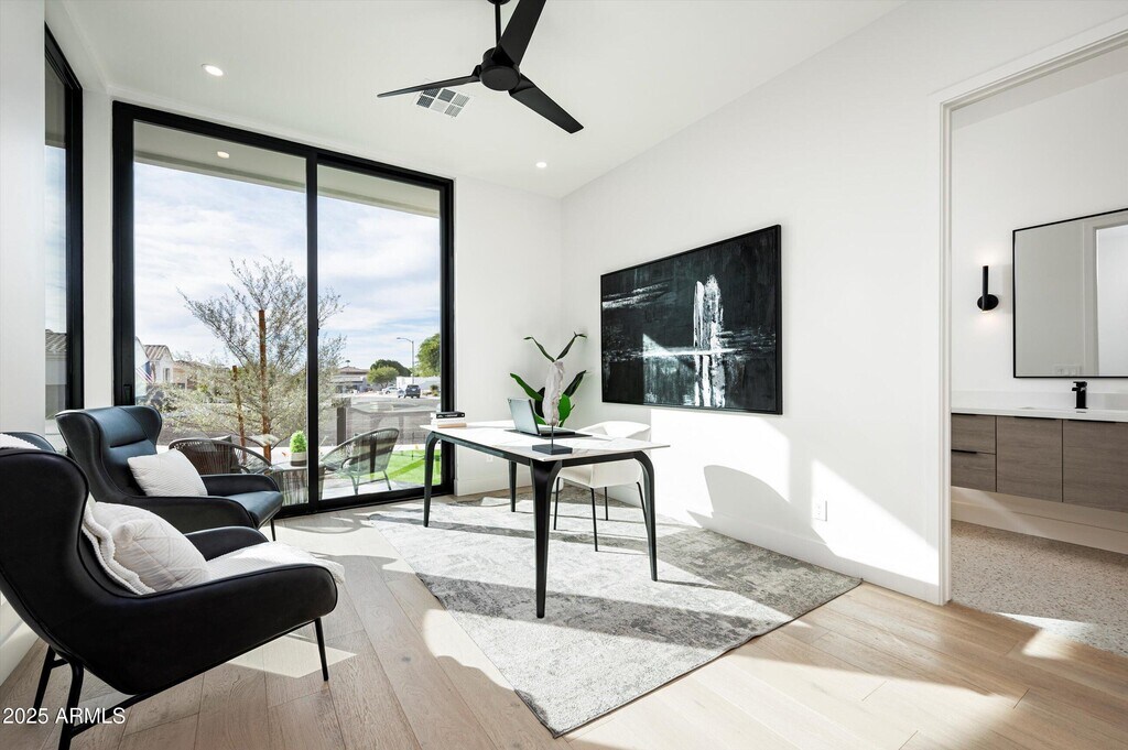 Sleek modern design by Blue Sky Homes completed in 2024. This impressive property delivers high design with low environmental impact. Encompassing 5,186 square feet,it includes 5 bedrooms and 5.5 bathrooms,all thoughtfully laid out to support health,comfort,and efficiency. Built with advanced materials and systems,it surpasses standard new builds by 50% in energy performance and holds both Energy Star and Indoor AirPlus certifications. Natural light pours through oversized windows,bringing warmth and brightness into every corner. The open-concept kitchen connects to the dining and living areas,anchored by a sleek 60-inch gas fireplace.