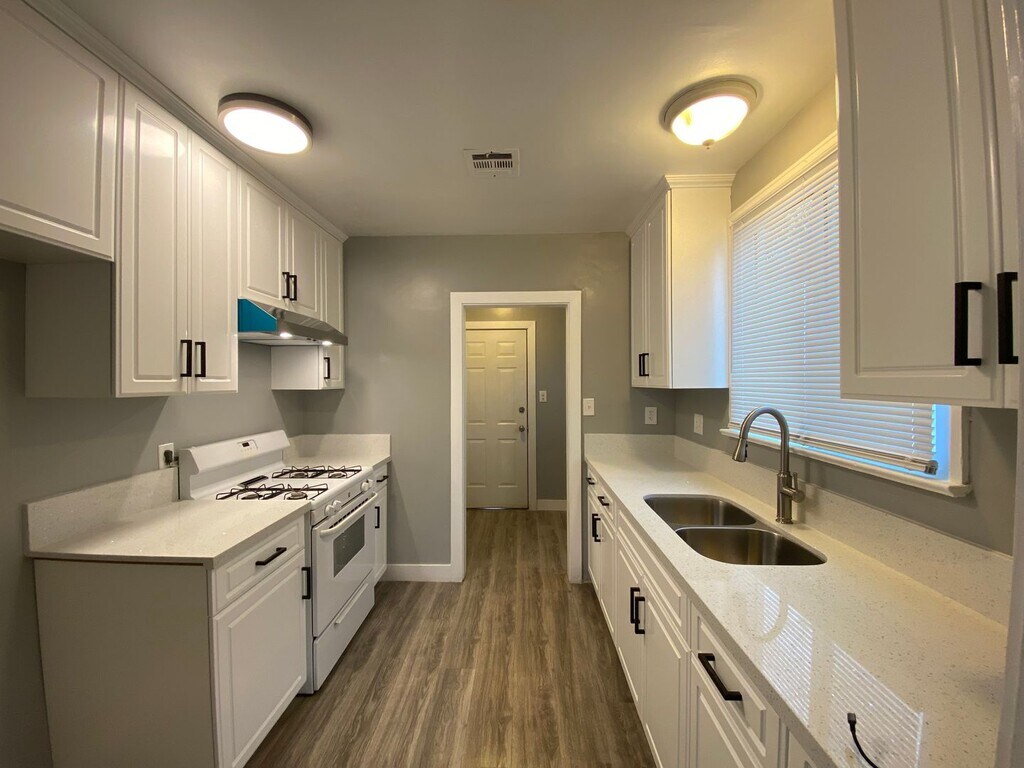 Welcome to your dream home in Bakersfield, CA! This newly remodeled 2-bedroom, 1-bathroom house is a gem in the heart of NE Bakersfield. The house," is conveniently located close to shopping centers, schools, and parks. The property sits on a spacious corner lot, offering a generous yard for outdoor activities. Inside, you'll find fresh new paint and new vinyl flooring throughout, creating a clean and modern aesthetic. The kitchen is a chef's dream, boasting new cabinets and stunning quartz countertops. The house also features all-new windows, allowing for plenty of natural light. The bathroom has been tastefully remodeled, adding to the overall appeal of this charming home. Don't miss out on this incredible opportunity to make this house your home!