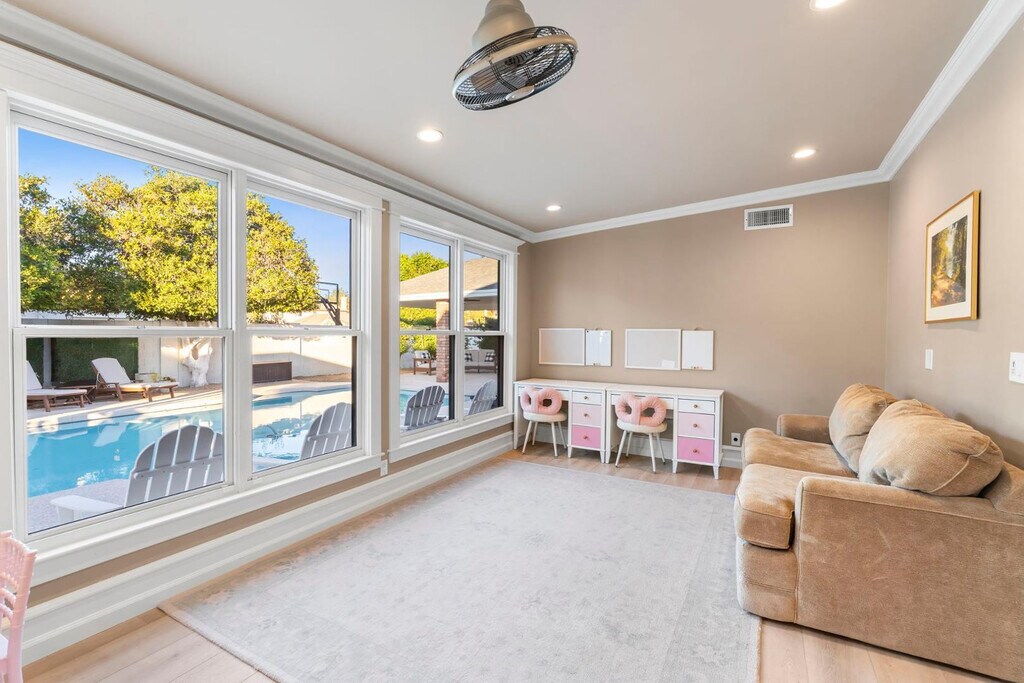 Turnkey beauty blends timeless design with modern comfort. With 5 beds,3.5 baths on a spacious corner lot in the sought-after Forest Knoll community,the home spans 4,200 sf with beautifully updated flooring and custom finishes. The open layout centers on a chef's kitchen,formal dining,with custom cabinetry. The ample downstairs primary suite boasts a lovely,spa-like bathroom. There is room for guests,kids,and storage galore with a formal sitting area around a fireplace,and an office beaming with natural light. Three brand new HVAC units! Outside,enjoy a sparkling pool,2 ramadas in a serene backyard with a 3 car garage.