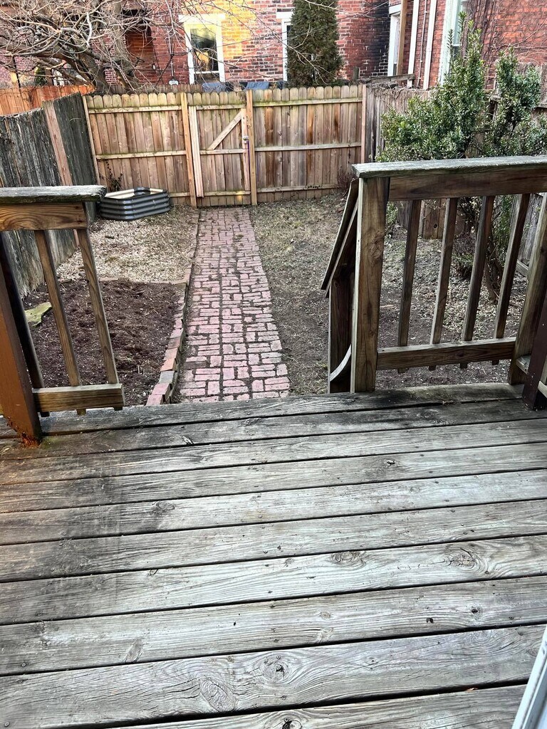 This three story townhome offers three bedrooms and two full baths, along with a second floor laundry room with utility sink. Kitchen includes all stainless appliances with dishwasher, built in microwave and garbage disposal. First and second floors feature original hardwood floors. Exposed brick. Full basement for storage. Large, fenced yard with planting beds. First and second floor decks. Gas heat, central air. Tenant is responsible for all utilities. Free street parking and just doors away from Little Amps coffee shop. Alvaro's Restaurant and Bakery is a block away, along with Riverfront Park. Lease term is one year. Cat and/or small dog permitted. Application fee is $32/person and includes credit/criminal history check.