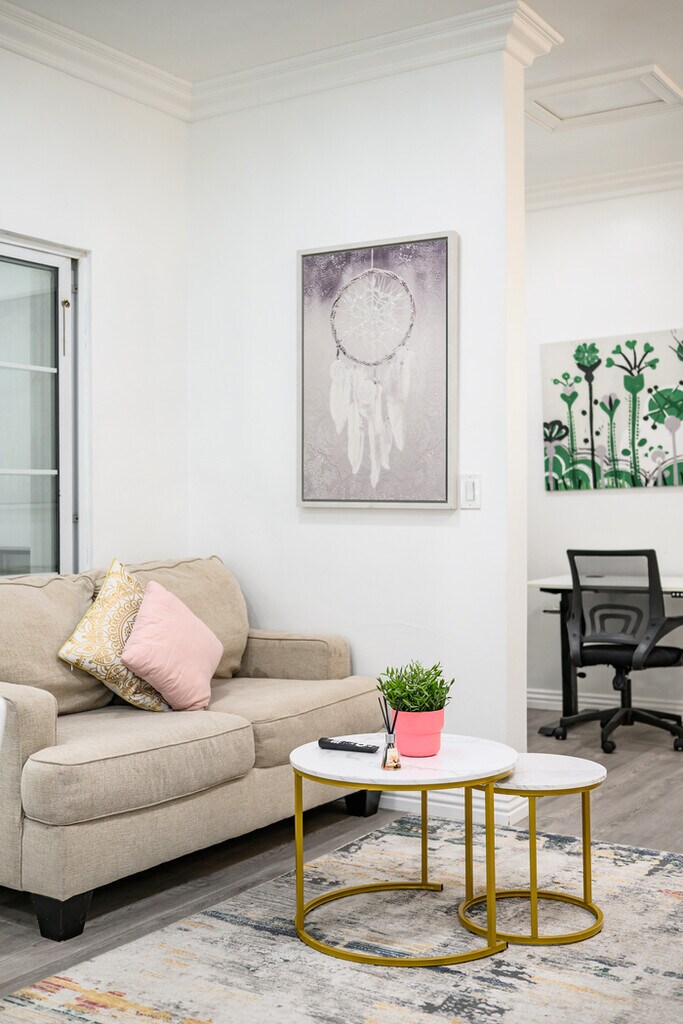 Fully Furnished 2BR Home w/ Private Entry – Available for Mid-Term & Long-Term Lease Contact us for detailed pricing and availability. This thoughtfully furnished 2-bedroom, 1-bath single-level home is perfect for extended stays. Whether you're a travel nurse, relocating professional, or small family, this move-in-ready residence offers turnkey convenience, bright interiors, and a private, peaceful setting just outside the LA metro area. Key Features: Fully Furnished & Ready for Living Includes all furniture, housewares, bedding, and kitchen essentials — just bring your suitcase. Comfortable & Private Bedrooms Bedroom 1: Queen bed, elegant headboard, blackout curtains Bedroom 2: Two twin beds — great for kids or guests High-quality linens and ample closet space in both rooms Open Living + Dining Area Bright and welcoming with modern furnishings, a comfy sofa, and wall-mounted smart TV — ideal for both relaxing and working remotely. Fully Stocked Kitchen A cook’s delight with full-size gas stove, refrigerator, microwave, toaster, and a full set of cookware, utensils, cutlery, and plates. Wood cabinetry and open shelving offer generous storage. Dedicated Work Space Includes a desk setup perfect for remote work or study, supported by high-speed WiFi throughout the unit. Clean Bathroom Well-maintained and spotless with bathtub/shower combo, hair dryer, towels, and toiletries. Laundry On-Site In-unit washer and dryer make extended stays convenient and low-maintenance. Gated Entry & Outdoor Space Separate, private entrance with a small front yard walkway and quiet surroundings. Exterior security lighting adds peace of mind. Location & Lifestyle Nestled in a residential neighborhood near freeways, the home offers convenient access to downtown LA, the San Gabriel Valley, and key hospitals and business centers. Ideal for mid- to long-term renters seeking flexibility and quiet comfort. Reach out today to schedule a viewing or ask about lease terms. Minimum 30-day stay required. Utilities negotiable based on lease length. Contact us to schedule a showing.