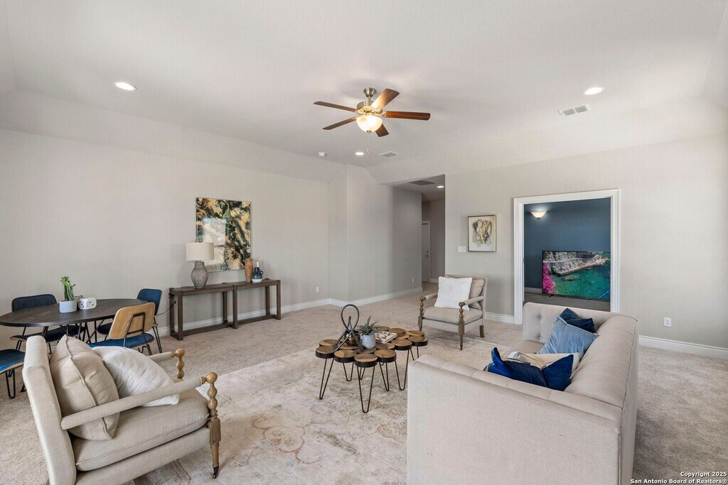 Refined, elevated living in a private gated setting-this Shavano Highlands residence delivers the space, design, and lifestyle today's high-end renter expects. From the moment you arrive, the curb appeal and controlled-access community set the tone, while inside, soaring ceilings and a light-filled open layout create an immediate sense of scale and sophistication . The heart of the home is a true chef's kitchen, designed for both daily living and entertaining, featuring a large island, premium finishes, and seamless connection to the main living spaces. Expansive sliding doors extend the experience outdoors to a fully equipped backyard with a built-in kitchen and fireplace-ideal for hosting or unwinding in a private, resort-style setting. The primary suite is thoughtfully positioned for privacy and offers a spa-inspired retreat, while additional bedrooms and flexible spaces-including a loft, media room, and dedicated office-provide the versatility needed for work, guests, or multi-generational living. Located in one of the area's most desirable communities with convenient access to top-rated schools, shopping, dining, and major corridors, this home offers a rare opportunity to enjoy luxury, space, and everyday comfort in a setting that truly stands apart from the typical rental experience.