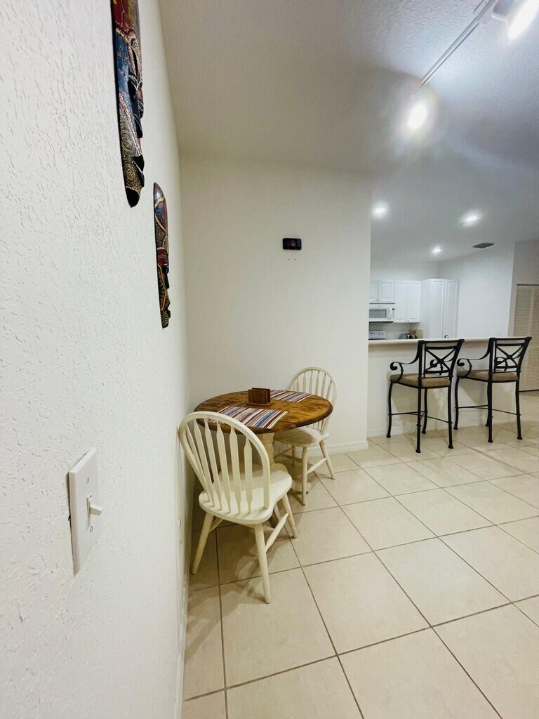 Beautiful end-unit villa in a tucked-away community, just minutes from Historic Downtown Fort Pierce, beaches, shopping, and more! This rare find has been well maintained and features a welcoming front porch, a screened patio, tray ceiling in the living area, and hard-surface flooring throughout. The open galley kitchen flows seamlessly into the living space, and the home offers large, comfortable rooms and bathrooms.The generous primary suite includes dual closets and a spacious primary bath with a soaking tub, walk-in shower, and dual sinks. The garage provides additional storage space or room for a workbench and includes a washer and dryer. Residents enjoy access to the community pool along with many additional inclusions.