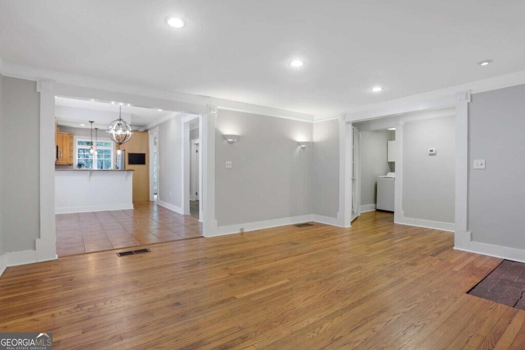 Discover the charm of Lake Claire living in this delightful bungalow. Nestled in a highly sought-after in-town neighborhood, this home combines classic comfort with modern amenities. The wide front porch invites you in with its lovely swing, perfect for savoring serene mornings or relaxing afternoons. Step inside to find hardwood floors, an updated kitchen, complete with stainless steel appliances, a breakfast bar, and dining area, and newer lighting. The home features three bedrooms and two spacious bathrooms all on one level, along with a convenient laundry room equipped with both a washer and dryer. The interiors are well-maintained, ensuring a move-in-ready experience. The highlight of this property is the expansive fenced backyard. Enjoy outdoor gatherings on the spacious two-tiered back deck, providing ample space for entertainment and relaxation. Beyond the deck, there's a large shaded grassy yard to enjoy, with yard maintenance provided by the owner. Located within walking distance to schools, parks, and a variety of local restaurants, this home provides the perfect blend of community and convenience. Enjoy easy access to Lake Claire Park and the vibrant surroundings of Atlanta.