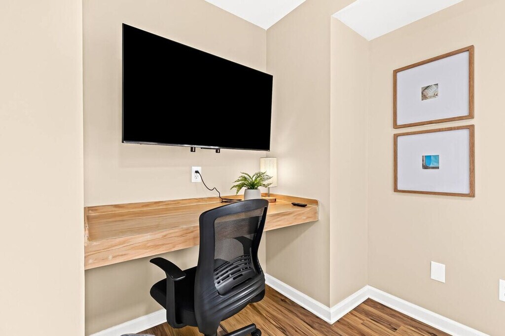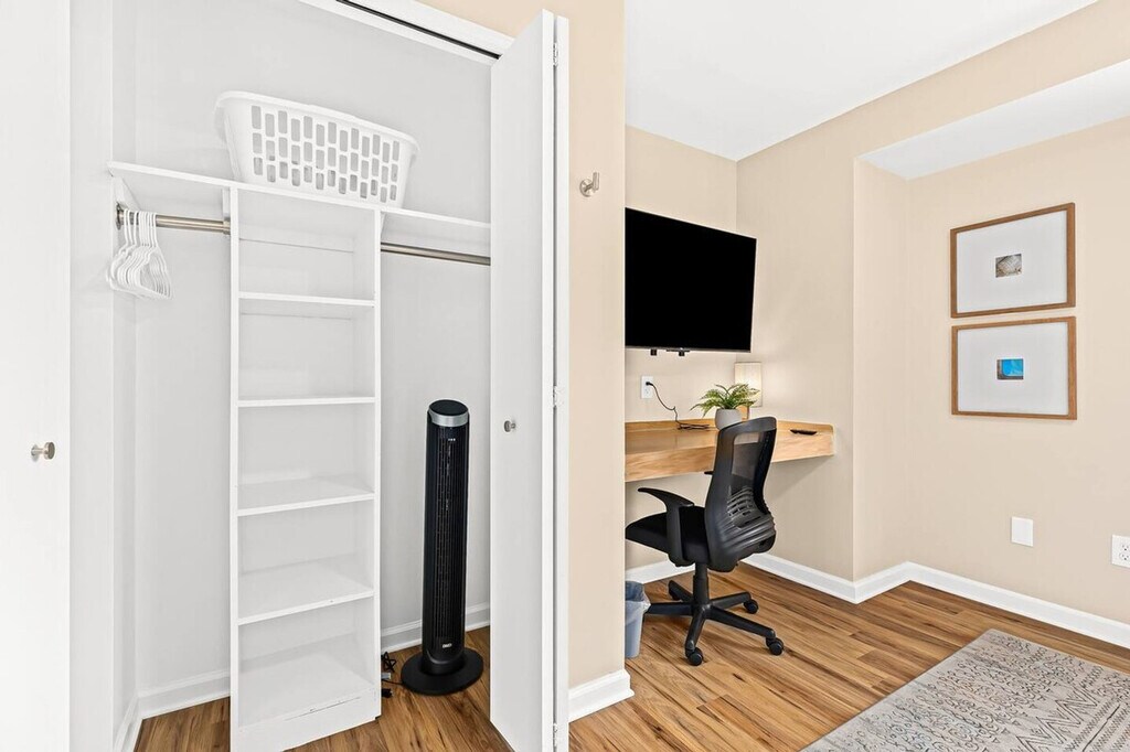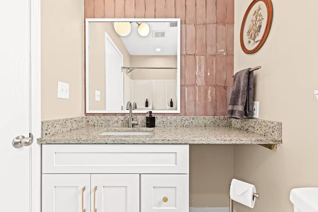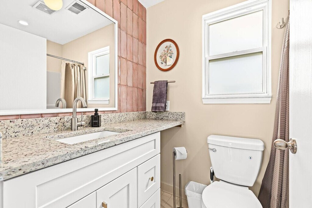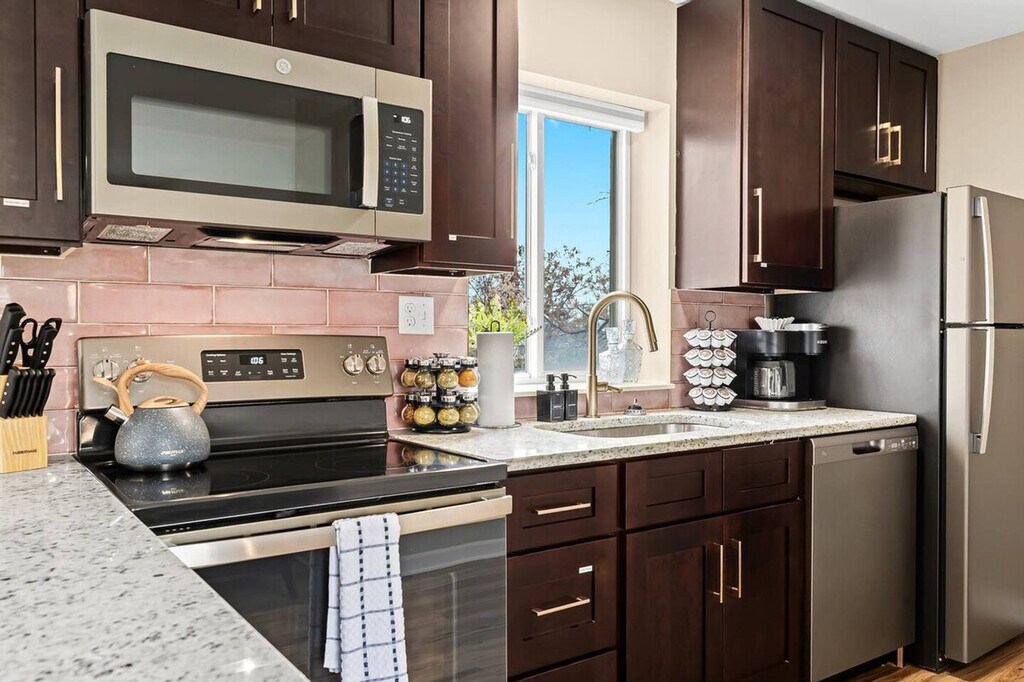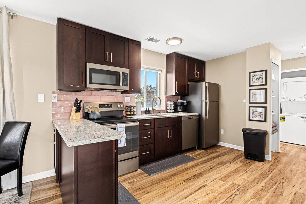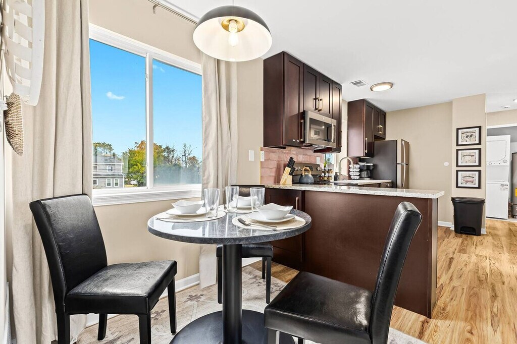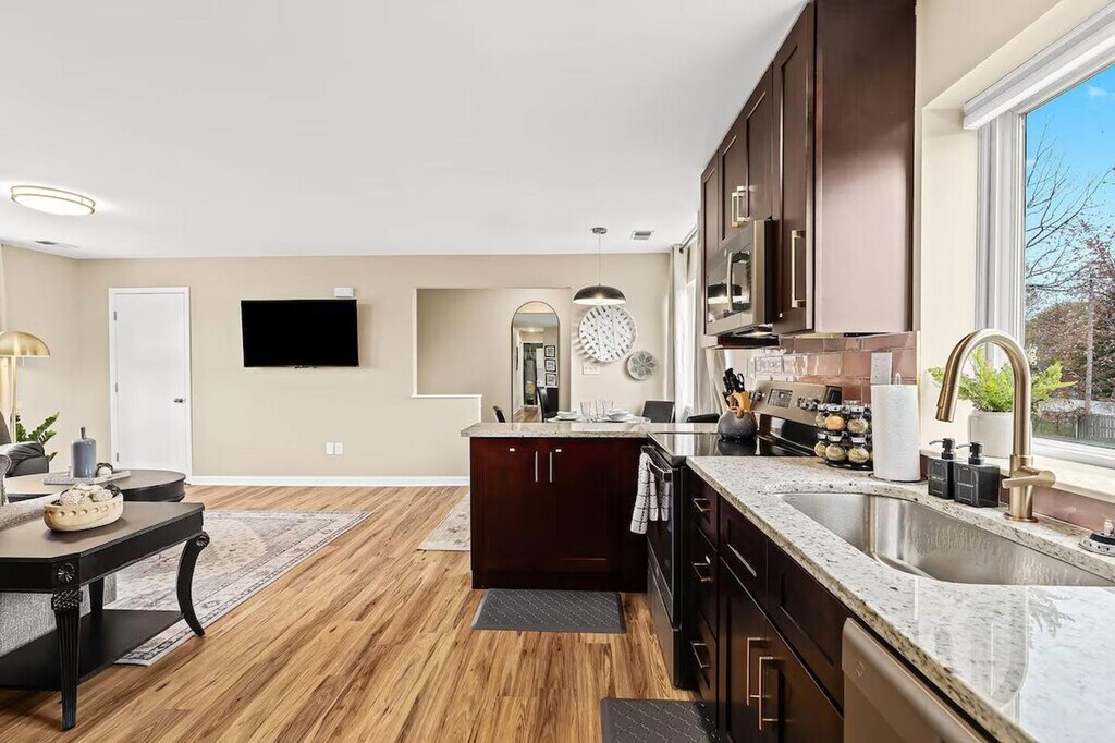 Relax and enjoy your stay in this spacious and newly renovated 1-bedroom apartment located on the 2nd floor in the safe and quiet community of Roseville. This apartment offers a peaceful retreat surrounded by mature trees and privacy, making it an ideal choice for those traveling to the Detroit area. Within 1 mile, you'll have access to the 696 and i94 expressways, plenty of restaurants and bars, shopping, and stores. Welcome to the newly renovated, spacious apartment, where you will experience the peaceful ambiance of an inviting Roseville retreat. The open concept living area allows you to relax, watch a movie, prepare your favorite meals, and enjoy memorable evenings. The fully stocked kitchen features granite countertops and modern cooking appliances, making meal preparation effortless and fun. Once you are ready to rest, retreat to the highly comfortable king bedroom, providing a fantastic oasis of relaxation. For your convenience, an EV charger is available. Free parking is offered in the parking area behind the house. Roseville, MI is centrally located within Macomb County, offering convenient access to Metro Detroit. This location is minutes away from Macomb Mall and Macomb Community College, and only a 1/2 mile from the 696 and i94 expressways, providing quick access to shopping, restaurants, and entertainment. It's also a short drive to Lake St. Clair and Metro Parkway Beach. The property is tucked away off the main road, surrounded by mature trees and greenery. This unit is not pet friendly, and non-approved pets will be subject to a $1000 fine. Smoking is only allowed outside, with a $1000 fine for smoking inside the unit. Quiet hours are from 9 PM to 8 AM daily, and noise complaints will incur a $250 fine. A $250 fee will be charged for checking out after 11:15 AM. Please do not move furniture, as a $250 fine will apply if furniture is moved from its original position. An excessive cleaning fee of up to $250 may apply for dirt, mud, or stains on floors or rugs. Security cameras are installed around the exterior of the property, including a Ring doorbell at the front door, monitoring the exterior entryway 24/7. There are no cameras inside the property, ensuring your privacy throughout your stay. A laptop computer is not included. [SI]