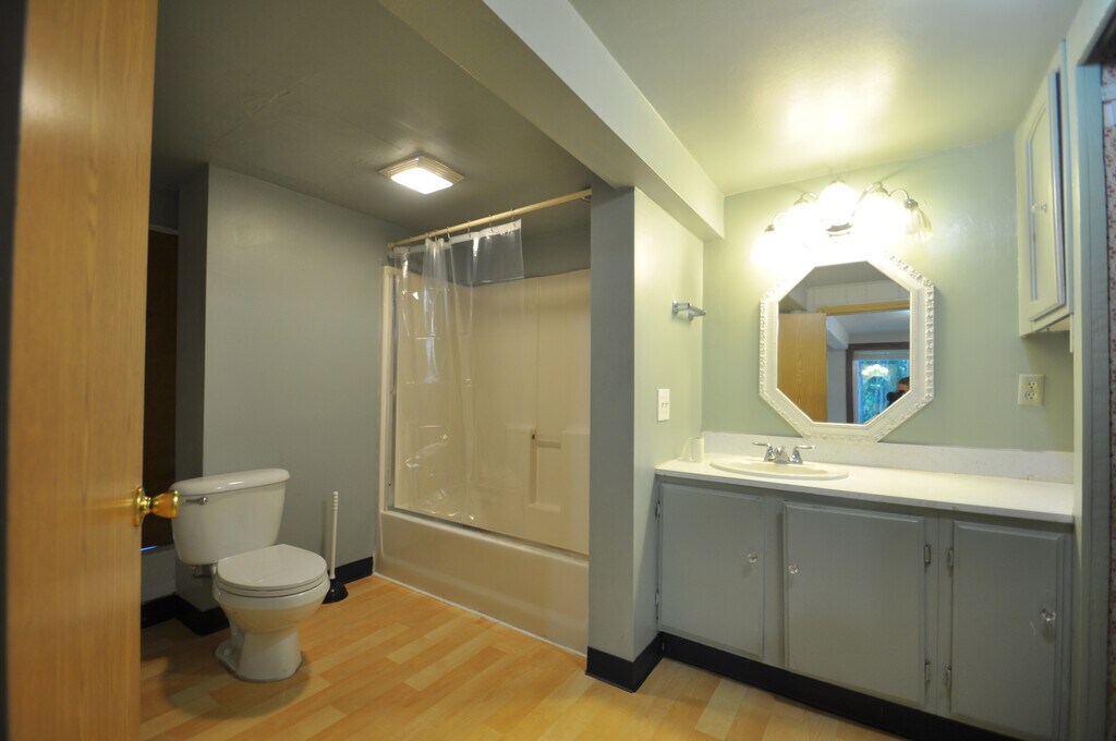 Basement apartment of home. REMODELED UNIT. Great unit that feels very private. Walk-out basement unit. Tenant has laundry room, storage room, walk thru room (bonus/office), back access to partial fenced back yard, 1 covered parking space + 1 guest parking space. Partial views of Columbia City. No mail receptacle. Newer: baseboard heaters, interior paint, flooring, clothes washer, dryer and refrigerator. Water & Sewer included with rent. Tenant pays for their own electricity and garbage service.