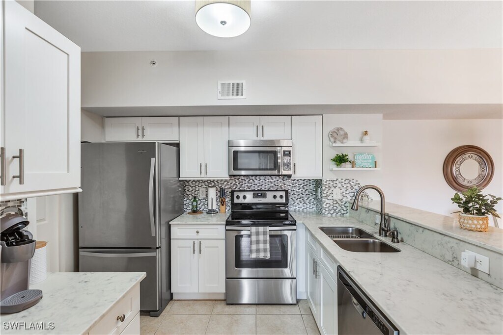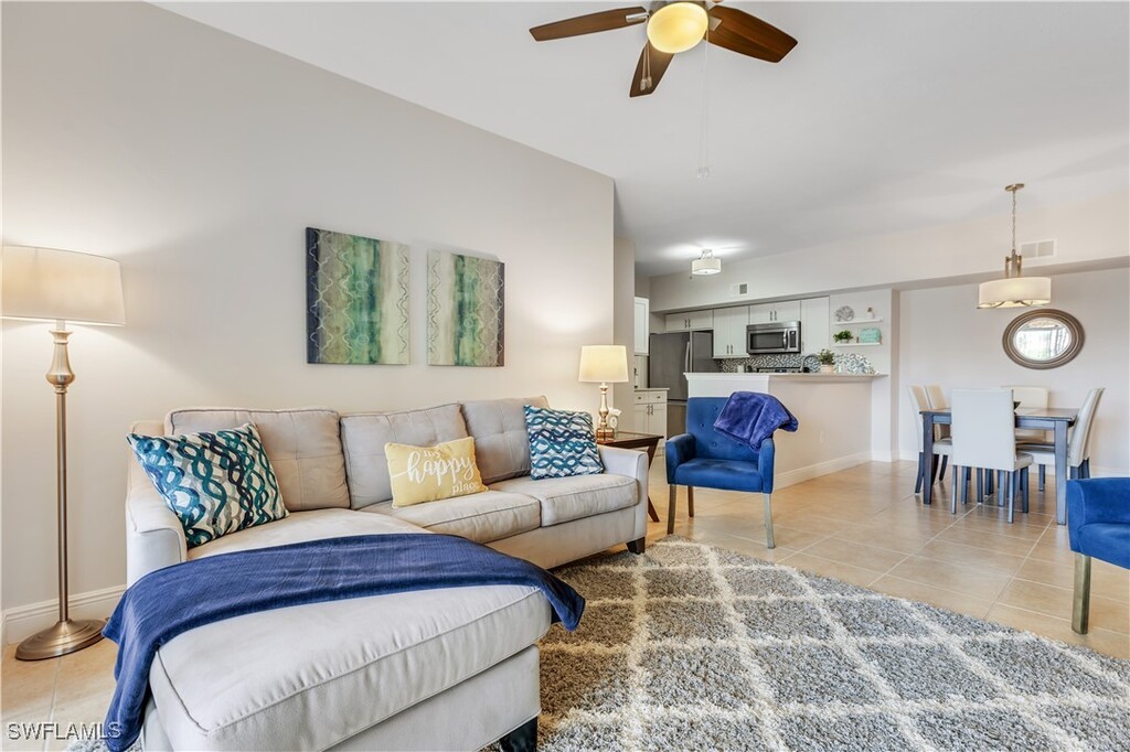 Here is your opportunity to vacation in the luxury condominium homes at Napoli. This is a must-see community! Residents will enjoy tons of amenities in this low-density gated community. This 2 bedroom,2 bath condo is an amazing value. Enjoy carpet-living with ceramic tile flooring throughout the home. The condo has a light,bright,and neutral color palette,and is appointed with nice fixtures,and has stainless steel kitchen appliances. Condo is turnkey furnished and has everything you need for your home away from home. Bedrooms are generously sized,and the master features a walk-in closet. The condo also has a screened-in lanai,just off the living room and master bedroom. Napoli features many desirable amenities. There is a beautiful clubhouse overlooking the lake and fountain. A resort-style pool with a cabana and gathering area. Inside the clubhouse,there is a library,a billiards room,a lounge,and a fitness center. Outside,there is a bocce court and a tennis/pickleball court. Napoli is just a short drive from shopping,dining,I-75,downtown Naples,and gorgeous white sand beaches.