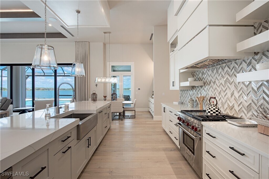 !! Available for Off Season 2026 Starting in May !!! Stunning former model home now available ! Professionally furnished and exquisitely decorated by Cardamon Interiors. Located on a prime lot this stunning lake view home is at the tip of the Peninsula at WildBlue. 140 feet of lake front!! Upgrades Galore !! including whole home generator,boat dock with lift,beautifully landscaped,automated hurricane screens on the lanai,and electric blinds in all the bedrooms. This open floor plan features 4 Bedrooms,Office plus an Ensuite Flex Room,5 Full Bathrooms and 1 Powder Bath plus 4 car garage. All the elegance you’d expect in a new luxury home - Sub Zero/Wolf appliances,a culinary dream,impact windows,Control 4 Home Automation,walk-in glass wine cellar,and much more. Outside Living encompasses over 1500 Sq ft of covered lanai with kitchen,fireplace,and lots of seating along with a custom pool/spa,firepit and incredible lake views. The new clubhouse with resort pool and beach recently opened and is ready for you to enjoy all the incredible amenities that WildBlue has to offer ! Tennis,Pickleball,Basket ball,Boating,Fishing,Gym,Spa,Yoga room,Restaurant,Walking,and Biking.