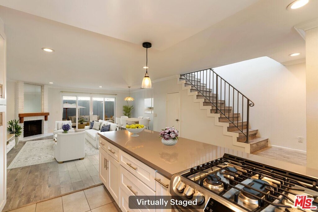 Newly remodeled 2-story townhouse! As you walk up the bourgainvilla landscaped pathway and enter thru the front door you will be engulfed with a bright and airy open floor plan. The gourmet kitchen with stainless steel appliances, quartz countertops and breakfast bar, opens into the expansive living/dining areas with a cozy fireplace and continues on thru the sliding doors to a spacious enclosed patio perfect for outdoor entertaining. Upstairs are 2 en-suite primary bedrooms and laundry area. Skylight on 2nd floor gives an abundance of natural light. In addition, there is a powder room, washer/dryer and recessed lighting. Two side-by-side parking spaces in gated underground parking with easy access to unit with two 6' x 5' x 3' storage spaces in front of each parking spot. Small 6-unit complex. Newer HVAC, paint, flooring, sliding doors and closets. Close to the beach, Main St., 3rd St. Promenade, Santa Monica Pier, Venice, Marina del Rey, Abbot Kinney,renowned dining, outstanding shopping and just a short drive to the freeways. Create your California lifestyle in one of Los Angeles' most desirable neighborhoods. Fireplace is decorative only, no credits will be given. MLS# 26742601