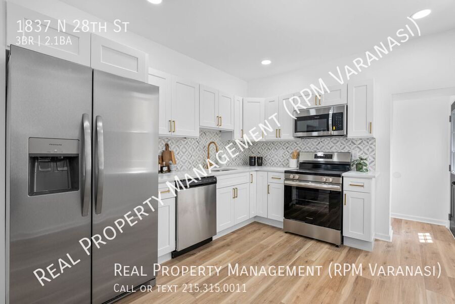 Fully Gut-Renovated Brewerytown Townhome – Available Now! 3 Bedrooms • 2.5 Baths • Finished Basement • Central HVAC Designer kitchen & spa-style baths • Move-in ready • Professionally managed Rent: $2,750/month Security Deposit: $2,750 View 3D Tour: Welcome to 1837 N 28th Street, a beautifully fully gut-renovated 3-bedroom, 2.5-bath townhome in the heart of Brewerytown. Offering over 1,200 sq ft of modern living space plus a finished basement, this home blends high-end design with everyday functionality. The open-concept main level features new flooring, recessed lighting, and a stunning white kitchen with quartz countertops, designer tile backsplash, brass hardware, and stainless-steel Frigidaire appliances. A main-floor laundry area adds everyday convenience. The finished basement provides flexible bonus space—ideal for a home office, media room, gym, or guest area—and includes a half bath. Upstairs, you’ll find three well-sized bedrooms and two fully updated bathrooms with elegant tile work, brushed-gold fixtures, and modern finishes. One bath features a spa-like walk-in shower, while the other offers a tub/shower combo. This home was fully gut renovated, including new plumbing, electrical, central HVAC, water heater, and energy-efficient windows, offering comfort, efficiency, and peace of mind. All Utilitites Are Paid By The Tenant.
