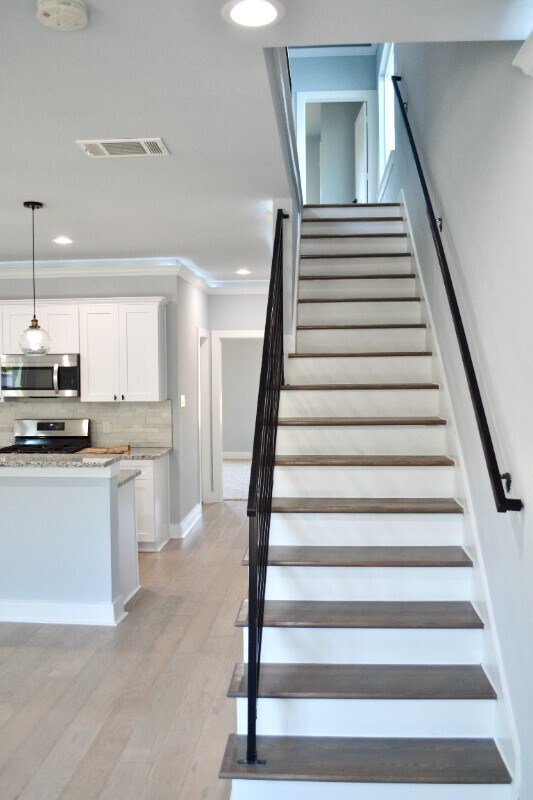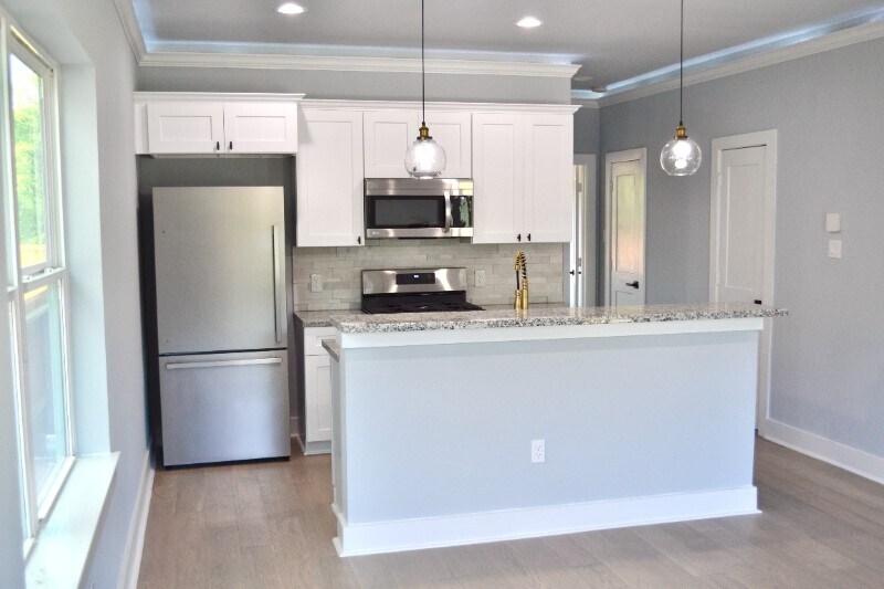 3 year old townhome with quartz countertops,high end finishes,hand scraped hard wood floors,carpet in bedrooms,ambient lighting,remote control fans,Vivint security system and stainless steel appliances. All appliances are present including washer and dryer. Bedrooms are all spacious and there is lots of storage including a gigantic pantry. Renters pay all utilities which include gas,electric and water. Renter is also responsible for lawn maintenance,pest control,and alarm system fees. MLS# 41848830
