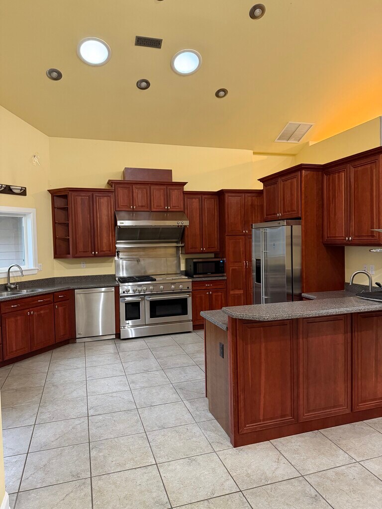 5 acres fully fence private park liked property. Custom house with high ceiling and built-in speakers throughout. House is very spacious, clean, modern look. Geothermal Heating and Cooling technology throughout. Beside the 3 bedrooms and 2.5 bathrooms, there is also a decent size office and a big sun room. High-end chef kitchen with stainless steel appliance and granite counter top. This house has plenty of windows with amazing views. Beautiful deck wrap around the whole house. Whole property is very peaceful and quiet with plenty of plum and apple trees. Friendly private neighborhood. Plenty of parking spaces on property. Upscale private living at a very affordable cost. (This property also have a 2500sf Shop & 1 full bath with an attached 15 feet awning L shape that is not included in the rent. Renting the shop is possible with additional monthly fee if interested. Otherwise, the shop will be vacant if only renting the house.) Tenant is responsible for all utilities usage such as gas, electricity, and garbage. There is no monthly sewer or water bill because this property has its own septic tank and well water. However, there is a small yearly fee that is require for maintenance of the septic tank and well house/pump. There is a no smoking policy inside the house. Pet fee can be waived if pet live outdoor. Please be mindful of yard upkeep. House must be taken care in a respectful manner. We are looking for a clean and responsible tenant. Lease is 1 year term.