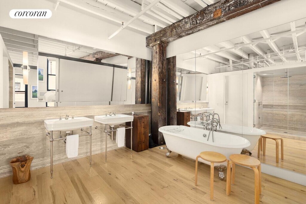 This quintessential classic Soho artists full floor 4000 SF sensational state of the art loft has been transformed into a large 2 bedrooms, without forgetting the incredible history of this important, elegant and sunny space. Located in a beautiful 1920 - 6 stories red brick building at the crossroads of Little Italy, Chinatown, Soho and the Lower East Side, this property has that incredible design you have been looking for, as in a location that is hard to match. Entering from the privacy of a discrete key locked large elevator (with virtual doorman and cameras in the apartment), one is transported to an astounding 38ft x 39ft entertaining LR with 5 oversized south facing windows allowing for streaming sunlight all day, as Little Italy and skyline views. This spacious, fully furnished area features 4-plank ash hardwood floors with custom inlaid up lighting, highlighting the historic beamed ceilings and original wood columns with over 13ft soaring ceilings. There is a large dining area with seating for 10, as a home theater for cozy movie nights.Exposed brick enhances the atmosphere of its cool downtown vibe. Off the LR, a sleek custom chefs eat in kitchen, which has an abundance of cabinetry and cement counter tops and is equipped with a stainless-steel GE refrigerator, full sized wall Viking 6 gas burners stove top/oven, with a Zepher vent out hood, and Fisher & Paykel 2 drawers" dishwasher, as a large skylight. This extraordinary space has a West wing, which has a as sperate powder room and full-sized vented laundry room with Whirlpool W/D & sink, followed by a large 2nd BR, with ensuite custom marble bath with Waterworks fixtures. A Home Office for 2, completes this great scale wing.The Primary Bedroom Suite East wing is impressive with its oversized sleeping quarters, king size bed, his & hers dressing corridors with custom made walnut closets perfectly fitted, leading to a stunning 5 fixture marble spa-like bath (walk in steam shower, as separate tub and WC). This sprawling home is equipped with multi zone air conditioning (4), CAT 6 technology, an abundance of storage including an enormous walk in entry closet (where you could store bikes, as a large household storage closet. All closets" interiors are wood fitted, with every dream clothing divider you can expect in a luxury home.Everything has been done and furnished, beyond expectation. The location could not be more unique where old bohemia meets rarefied state of the art living. At the corner of Mulberry and Grand Streets exciting fashion, entertainment and dining opportunities await you. Convenient to grocery stores, shopping, world class dining as well as several subway lines. Rental availability: From 1 to 6 years. Available furnished. Pets on case by case. No Board Approval. Fees: Credit Check $ 250 24H Notice Please.