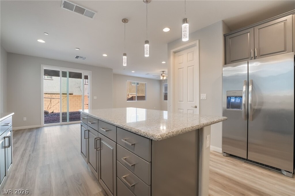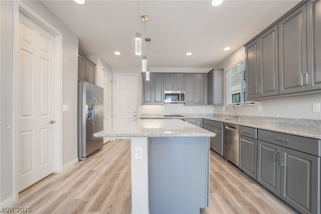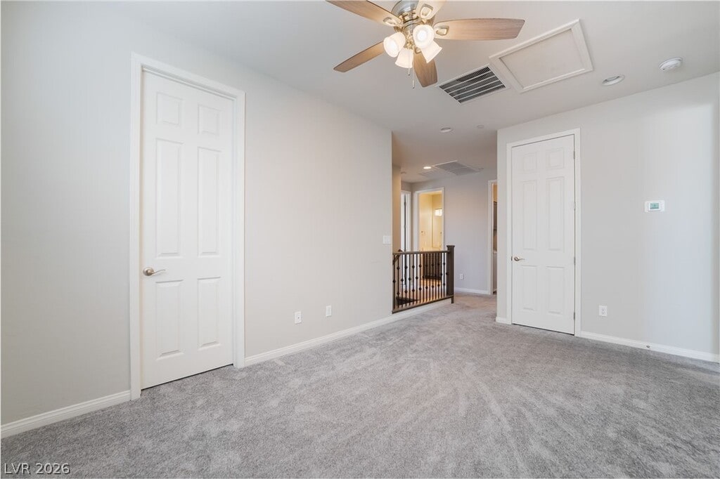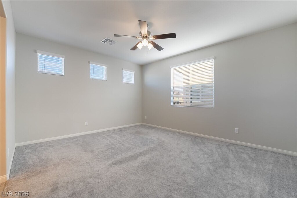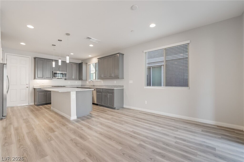 Experience newer construction in the highly desirable Cadence community, offering a thoughtfully designed open-concept layout ideal for both everyday living and entertaining. The kitchen features a spacious island, walk-in pantry, stainless steel appliances, and upgraded cabinetry, flowing seamlessly into the expansive living and dining areas. Upstairs, a flexible loft provides additional space for a home office, media room, or lounge. The primary suite includes a large walk-in closet and an en-suite bath with dual vanities, while the secondary bedrooms are generously sized and complete with ceiling fans. The finished backyard showcases low-maintenance desert landscaping, creating a clean and functional outdoor space. Residents of Cadence enjoy access to community amenities such as pools, parks, and outdoor gathering areas, all conveniently located near shopping, dining, and everyday essentials.