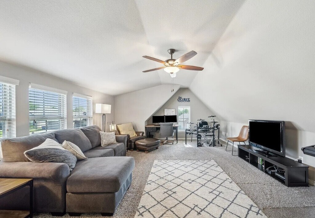 Updated and move-in ready, this home offers a thoughtful layout, quality finishes, and a long list of recent improvements. Vaulted ceilings and an open main living area center around a stacked stone fireplace, with a split floor plan that includes the primary suite downstairs and a large bonus room above the garage. The kitchen features granite countertops, stainless steel appliances, and updated hardware. The owners have made substantial upgrades, including new James Hardie cement board siding, full exterior paint, and improved landscaping in 2024. Additional updates include yard and gutter drainage systems, new ceiling fans throughout, and a full interior repaint using premium materials. An extended patio and oversized 2.5-car garage complete the package.