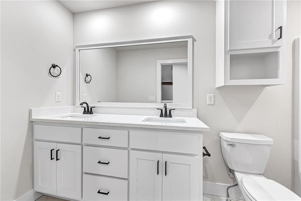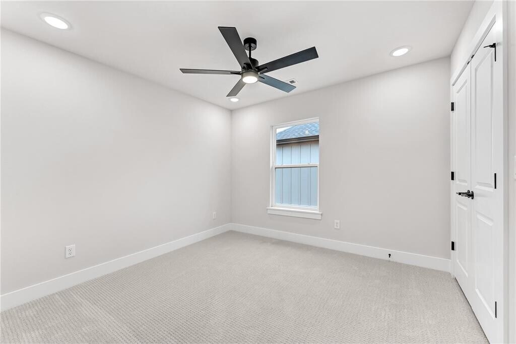 This beautiful new home sits directly across from Gamble Elementary and offers a highly functional layout. The main level features a primary suite with a full bath, a second bedroom, an office/exercise room, and an additional full bath. Upstairs, you’ll find two more bedrooms, a full bath, and a spacious theater/game room. Thoughtful upgrades include soaring ceilings with banister railings, quartz countertops, tiled showers, an electric fireplace, and a gas line for outdoor grilling. The open kitchen is appointed with custom cabinetry, a large walk-in pantry, and luxury vinyl flooring throughout the main level. The garage also includes an EV charging port. Ideally situated within walking distance of both Gamble Elementary and Bentonville West High School, the home provides quick access to I-49 for convenient trips to downtown Bentonville and the Walmart offices. MLS# 1330293