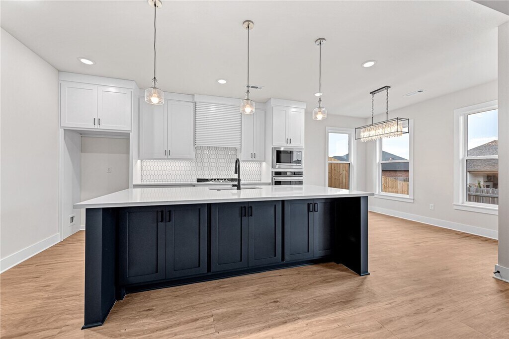 This beautiful new home sits directly across from Gamble Elementary and offers a highly functional layout. The main level features a primary suite with a full bath,a second bedroom,an office/exercise room,and an additional full bath. Upstairs,you’ll find two more bedrooms,a full bath,and a spacious theater/game room. Thoughtful upgrades include soaring ceilings with banister railings,quartz countertops,tiled showers,an electric fireplace,and a gas line for outdoor grilling. The open kitchen is appointed with custom cabinetry,a large walk-in pantry,and luxury vinyl flooring throughout the main level. The garage also includes an EV charging port. Ideally situated within walking distance of both Gamble Elementary and Bentonville West High School,the home provides quick access to I-49 for convenient trips to downtown Bentonville and the Walmart offices. MLS ID 1330293
