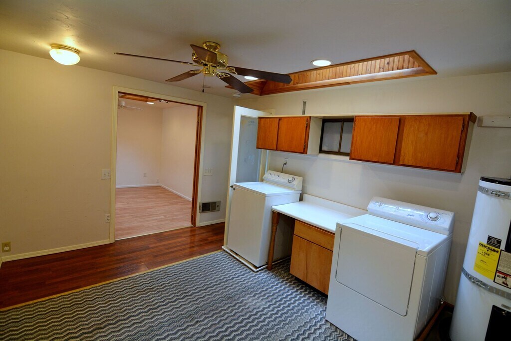Discover this delightful three-bedroom, one-bathroom detached home situated on a private lot, offering off-street, private parking for multiple vehicles. The property features a sunny, west-facing front deck, perfect for enjoying breathtaking sunsets. In addition to the three bedrooms, the home includes a versatile bonus room at the rear, equipped with a washer and dryer. This space can easily be transformed into a home office, exercise room, or any other functional area to suit your needs. Outside, you will find a small storage shed, while the interior boasts generous storage options, including custom shelves and cleverly designed nooks. The property is adorned with mature fruit trees and provides plenty of space for gardening enthusiasts. Enjoy the convenience of leaving your car at home, as the Shoreline North light rail station is just a short walk away. The home is located within the award-winning Shoreline School District and offers excellent access to local amenities, including Costco, Home Depot, restaurants, and I-5. Pets are welcome on a case-by-case basis; smoking is not permitted.