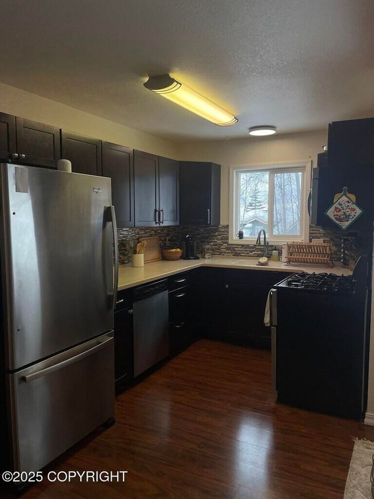 Peaceful Hillside retreat perfect mix of Alaska charm and modern comfort. This 3-bed, 2 full bath home is surrounded with Mountain views. There are ample amounts of storage in this home with a 1 car heated garage., Close commute to Three Bears, 15 minutes to JBER and Bike Paths to enjoy year-round. Pets possible on approval.