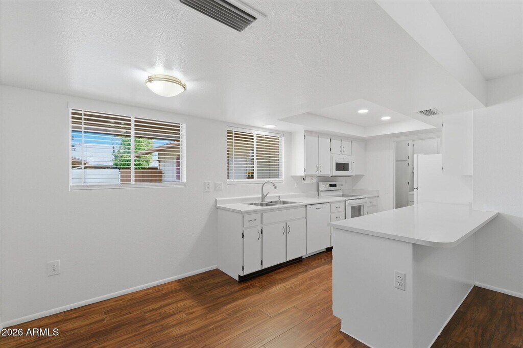 Charming Palomar Garden patio townhome in Sun City West's premier 55+ community. This 2BR/2BA well-maintained corner-lot home features an open kitchen with breakfast bar,bright & split floor plan,vaulted ceilings,newer white appliances plus interior full-size washer & dryer. Spacious private shaded patio with N-S exposure and low maintenance desert landscaping with a mature tree and potted plants. Tenants enjoy full access to Sun City West amenities including recreation centers,golf,pools,fitness,pickleball,tennis,bowling,clubs,parks,and restaurants. Great location minutes to Loop 303,Loop 101,US-60,and entertainment. Pets OK.