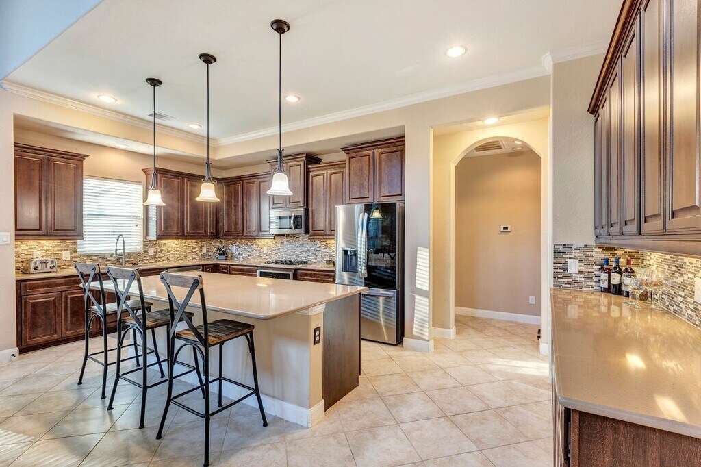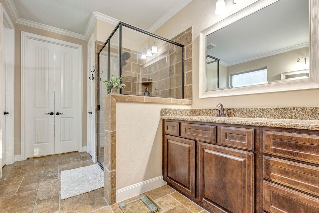 RARE 5-bedroom & 4 full-bathroom layout w/2 Bedrooms down and 2 YEAR OLD ROOF!The inside of this lovely home has a large Kitchen w/tons of cabinets,an expansive island,a large walk in pantry & custom tile backsplash.The Kitchen opens to an expansive Family Room w/high ceilings & a wall of windows + a stunning gaslog fireplace.The open concept includes a Dining area that transitions smoothly to both kitchen & family room. The Primary Bedroom at the back offers complete privacy,an oversized walk in closet,a generous en-suite bath w/double vanities,a soaking tub & travertine floors. Upstairs offers game room & three generously sized secondary bedrooms,each with a walk in closet. Green Belt Lot so no rear neighbors,a coveered patio,plus full sprinklers. Upgrades include:tankless water heater,New carpet down,Fresh Paint throughout,New Faucets in Kitchen,Primary & Guest Bath,Shed on side stays,New Gas Cooktop in Garage stays,Generator Hookup is ready & waiting. WasherDryer Stays! MLS# 17718634