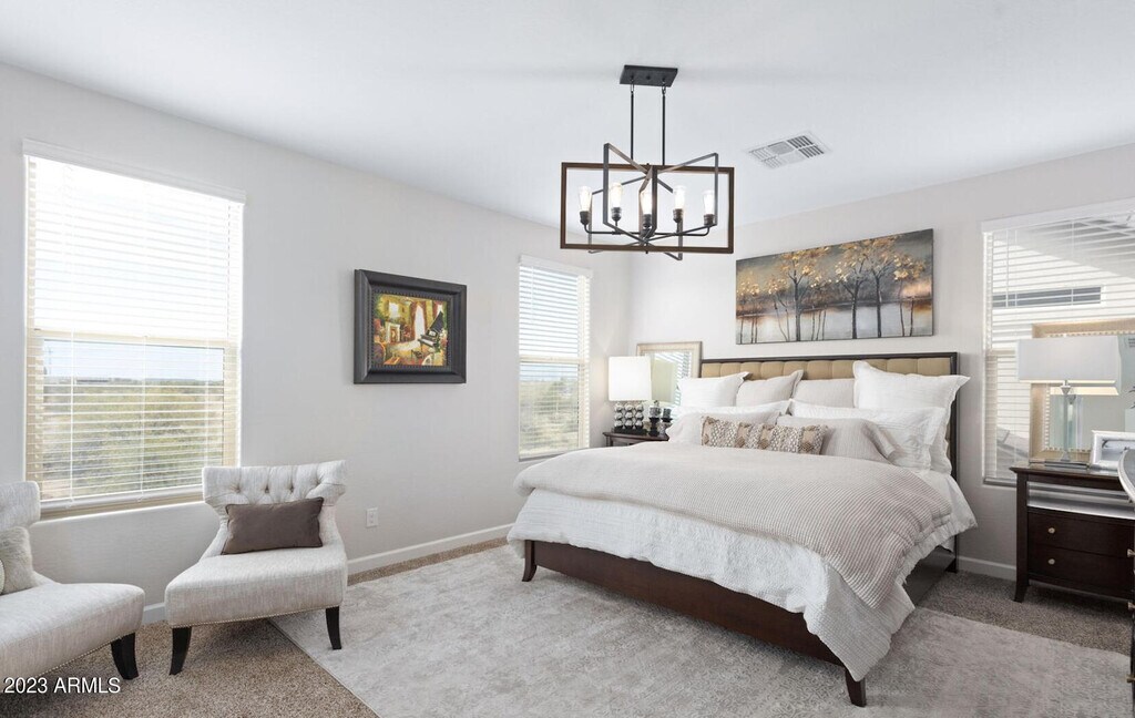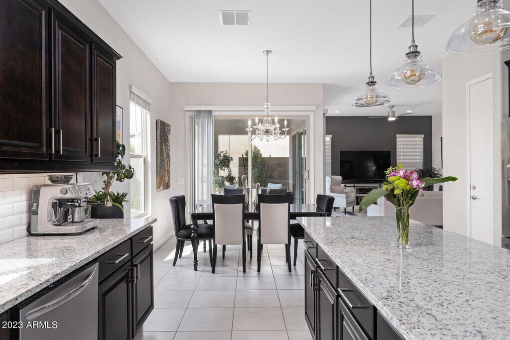 This beautiful home is located in Paradise Ridge an exclusive gated community in North Phoenix offering convenient access to Mayo Hospital,world-class golf,upscale shopping centers like Scottsdale Quarter,Kierland Commons and Desert Ridge,along with a diverse range of dining options,from fine dining to casual eateries. Luxurious modern finishes include granite countertops,brushed nickel hardware,and black iron light fixtures add sophisticated style throughout the home. Amenities in the community include heated pool,jacuzzi,parks,children's playground and access to desert hiking trails. The area is surrounded by stunning desert landscapes and scenic mountains,providing numerous opportunities for outdoor activities like hiking,biking,and golfing.