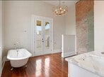 Gated off street covered parking and side door entrance. 1st level: entry area, 1 bedroom towards the rear of the home, 1 additional walk through room that can be office, dining room, bedroom, etc, laundry room, full bath, living, kitchen. Entire 2nd level is a master suite with large closet, bath and rear porch accessed from master bath. see floor plan for full details Two AC units 1 downstairs & 1 upstairs. Two blocks off St Charles and steps from tons of restaurants on OC Haley. Lawn care included.Listing is for 1845 Baronne St. It is part of a duplex.