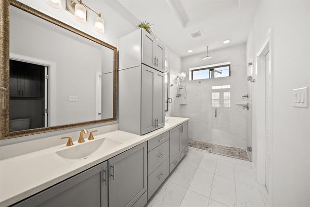 Experience upscale urban living in the coveted High Grove at West Kessler community! Ideally located within walking distance to Stevens Park Golf Course and the scenic trails of Twelve Hills Nature Preserve, this beautifully designed home blends modern comfort with prime convenience. Inside, you’ll find engineered hardwood flooring, soaring ceilings, stylish lighting, plantation shutters, and an airy, open-concept layout filled with natural light. The chef-inspired kitchen is a standout, featuring a generous island, GE stainless steel appliances, a gas cooktop, and a roomy dining area, ideal for both casual meals and entertaining. The living space is enhanced with custom built-in cabinetry, offering fa generous amount of storage and charm. Each bedroom includes a private ensuite, providing ultimate comfort for guests. Primary retreat impresses with two spacious walk-in closets and a spa-like bathroom. Outside, enjoy a low-maintenance yard complete with turf and a sleek decked patio perfect for unwinding or hosting. Community amenities include beautifully kept streets, two private park including a dog park, and of course close proximity to the lively Bishop Arts District and downtown Dallas.