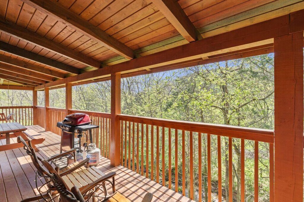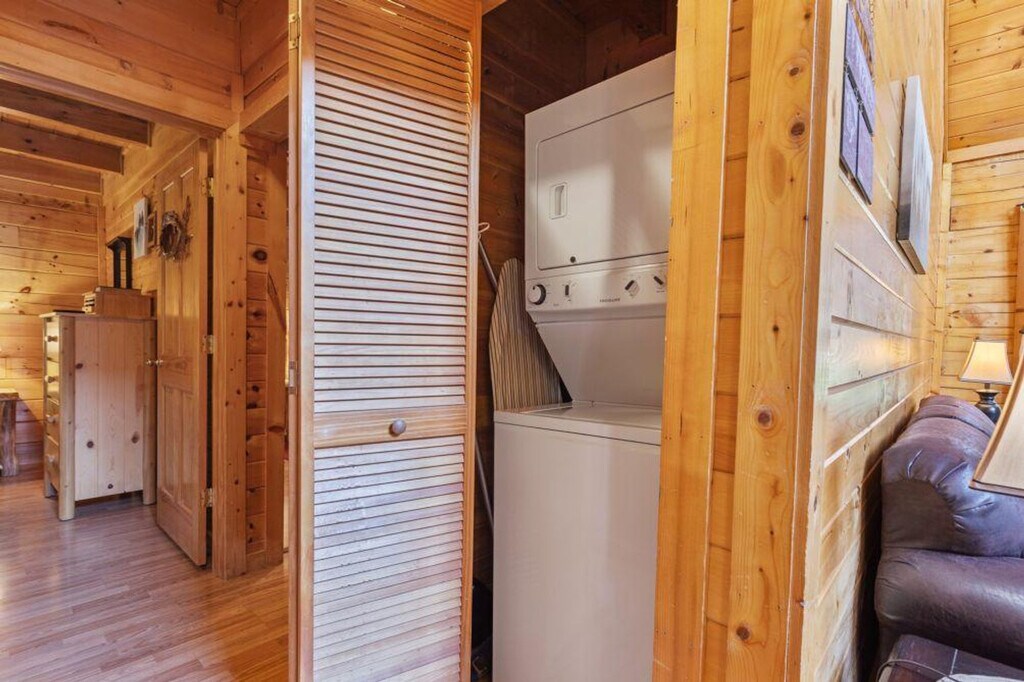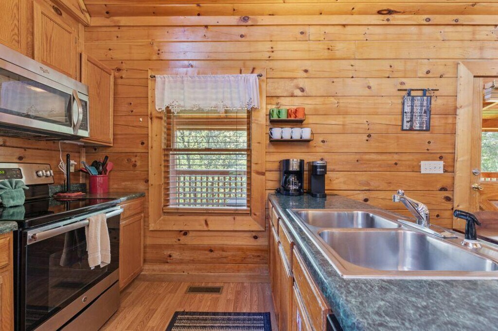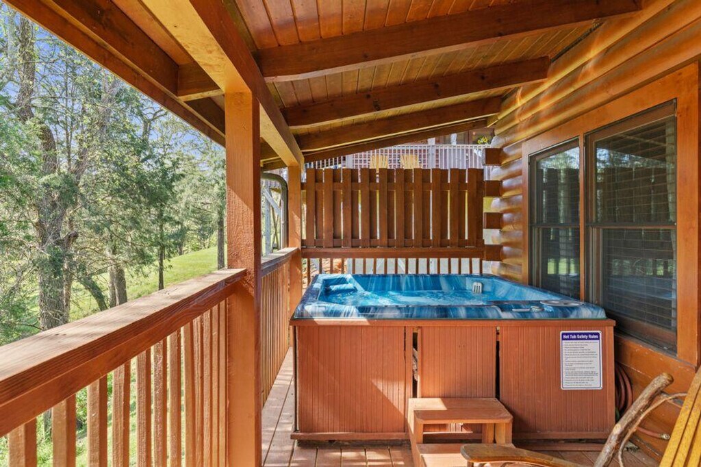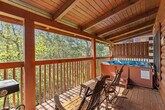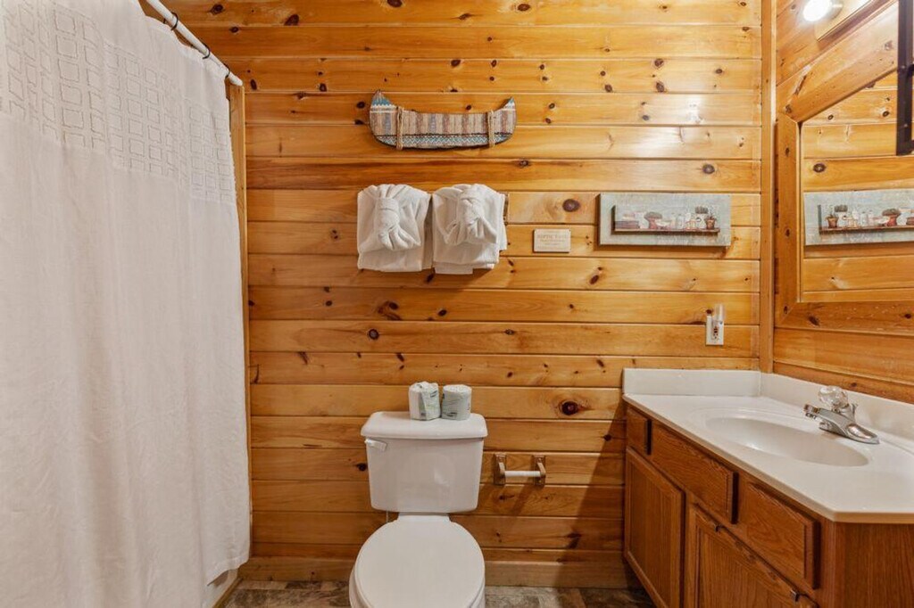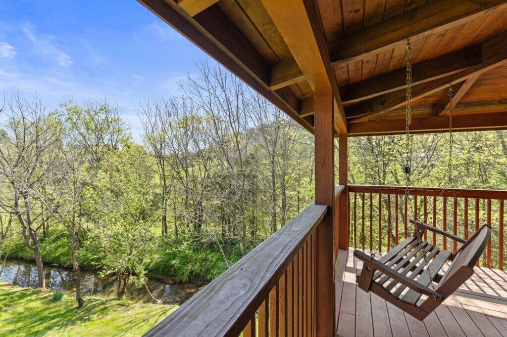 Tucked away beside a quiet, steady creek, this cozy cabin offers the perfect escape into nature. Inside, you'll find a fully equipped kitchen and a welcoming dining area, ideal for meals brought in or cooked from scratch. The open-concept living space is spacious and inviting, perfect for relaxing or gathering with family and friends. Both bedrooms feature their own full bathrooms, offering comfort and privacy for all guests. Step out onto the porch and unwind in the private hot tub while listening to the gentle sounds of the creek below, a peaceful setting for morning coffee or stargazing at night. This cabin offers a charming and restful retreat you’ll love returning to. It features air conditioning, a wood fireplace, a hot tub, a smart TV, and a dresser. The wrap-around porch and creek access enhance the experience, and a children's playground is nearby for family-friendly fun. The cabin includes a dedicated parking space for one car, with the possibility of fitting two, although it is a small space. Located in the Smokies, the cabin provides access to local attractions such as Dollywood, Ober Gatlinburg, The Island, Dolly's Stampede, and downtown Gatlinburg. The mountain roads can be steep and winding, adding to the charm of the area, so drive cautiously and give yourself extra time to enjoy the breathtaking views. A state identification card or driver's license copy will be requested upon booking. At least one guest must be 25 years or older. Guests are financially responsible for any property damage that may occur during the rental period due to negligence or abuse. Smoking is prohibited, and any violation of the smoking policy will incur a $400 fine plus cleaning costs to remove smoke odors from the unit and linens. Pets and parties are not allowed. [SI]