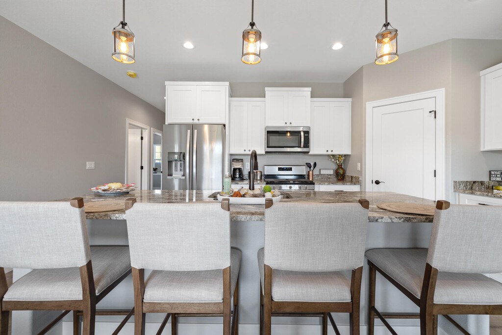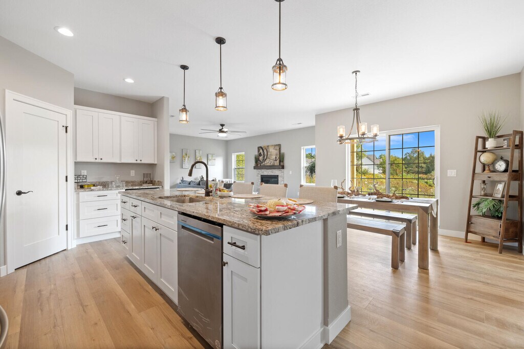 Beautiful lower 2-BR,2-BA condo offering comfort and convenience. The open-concept living area welcomes you with a cozy gas fireplace,perfect for everyday living and entertaining. The chef's kitchen features a large island,elegant granite counters,a walk-in pantry,and a dry bar for added style and function. Step out from the dining area to your private patio for a touch of outdoor relaxation. The primary suite is a private retreat with its own bath and spacious closet. Nine-foot ceilings throughout. Located just 45 minutes from Milwaukee. Enjoy maintenance-free livingno lawn care or snow removal! Pet-friendly (80 lb limit; multiple pets allowed). Two-year lease minimum. Photos of similar unit. Available now. Highly coveted Slinger school district.