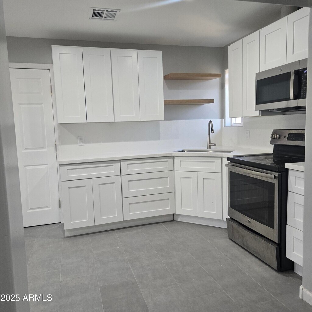Look no further! Comfort meets modern style in this charming 3-beds,2-baths home that has been TASTEFULLY REMODELED! Be greeted by the open living and dinning areas continue onto the renewed kitchen to find newer features,including built-in appliances,quartz counters with white shaker cabinetry. Natural light filled the spaces,complemented by new chic light fixtures,a neutral palette,and tile flooring throughout. NO HOA,. Ample 2-car garage,lovely covered patio,backyard. Check out all the upgrades this home offers! Ready to move in! Conveniently located near schools,ASU West,restaurants,shopping spots,and more!