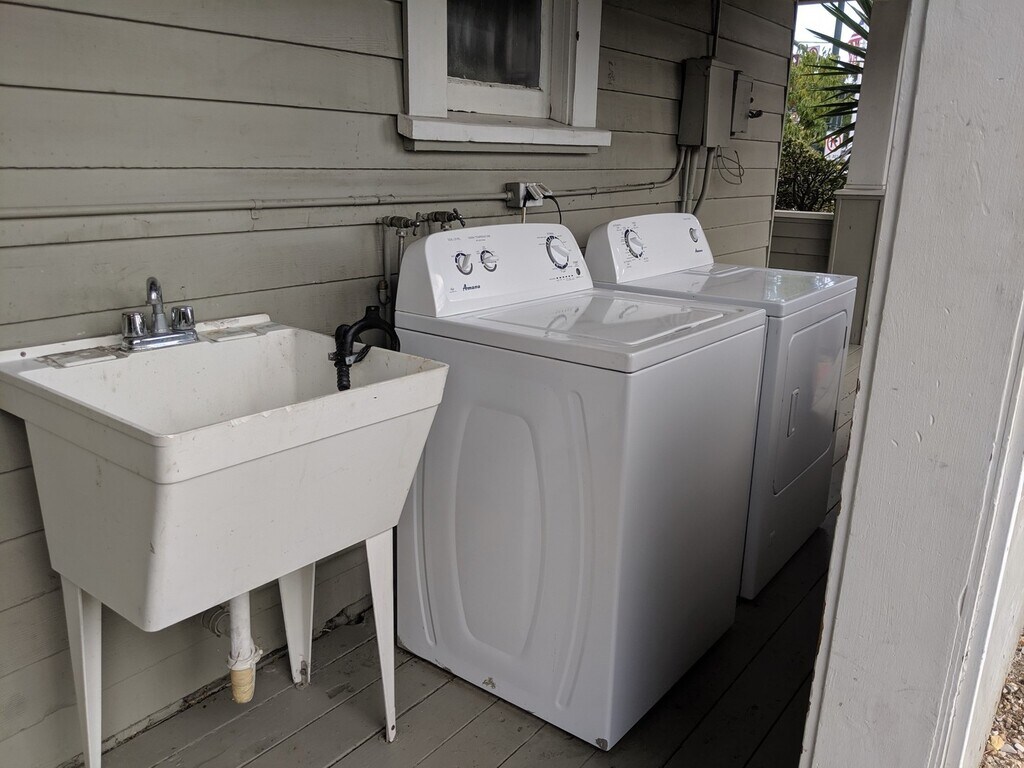 5bd, 3ba two story house with laundry hookups and off-street parking. Lots of space. Large living room and rustic woodwork on the interior. Great central location - very historic!