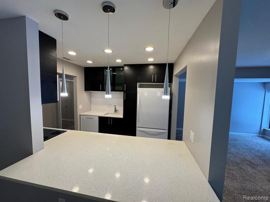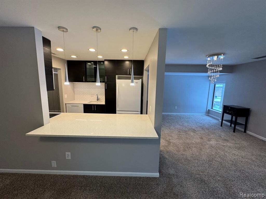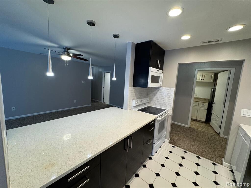 Beautifully updated, move-in-ready second-floor condo in prime Livonia location. This spacious unit features two bedrooms, a remodeled main bath with dual sinks, and a modern kitchen with granite countertops. Primary bedroom has lots of closet space and private bathroom. It opens to a large covered balcony overlooking manicured grounds. Floor-to-ceiling windows brighten the open living and dining area. Large laundry area finished with extra storage cabinets. Lease includes heat, water, outside maintenance, use of complex outstanding facilities, and a carport. Residents enjoy a top-notch clubhouse with a heated indoor pool, sauna, exercise room, banquet space, and library. Heat and water included. Pets allowed with approval and deposit. Convenient access to highways, shopping, and entertainment. Apply through Rentspree or Zillow Rentals. 1 month, plus 1.5 month deposit are required upfront.