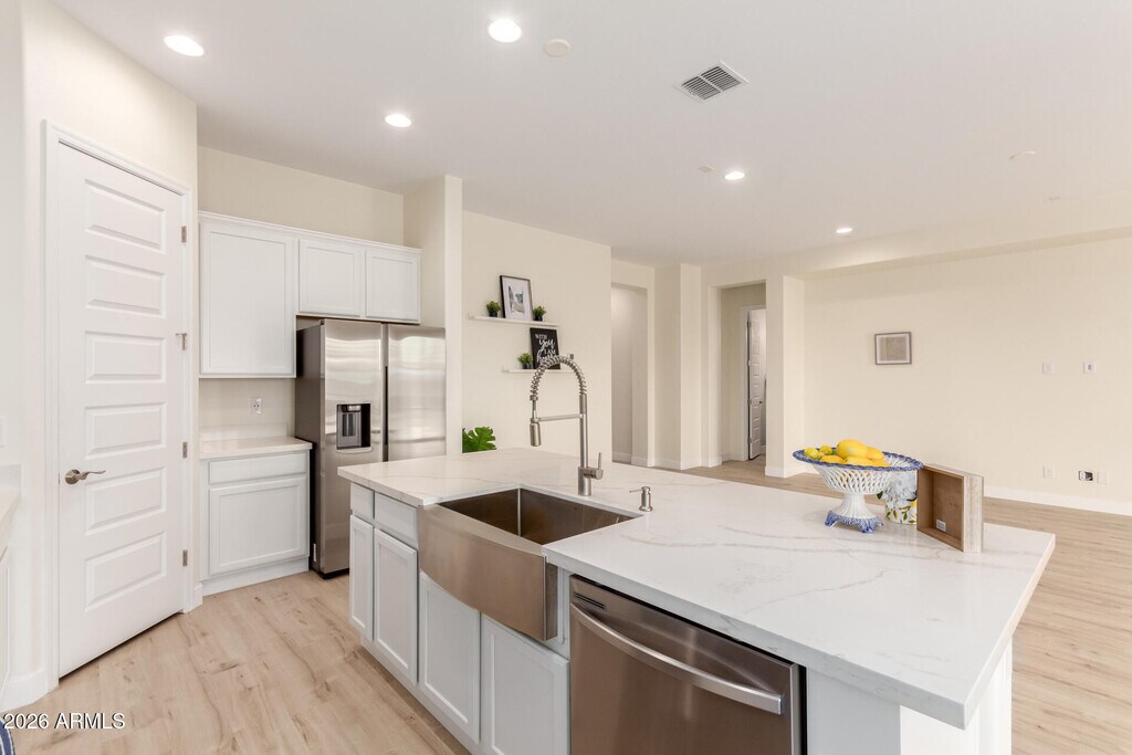 Spacious,stylish,and energy-efficient! This 4-bedroom,3.5-bath rental in Las Brisas offers 2,324 sq ft of comfortable living with solar panels to help reduce energy costs. Enjoy bright,open living spaces with wood-look flooring,plantation shutters,neutral tones,and sliding doors to the backyard. The modern kitchen features white cabinetry,stainless steel appliances,a pantry,and a large island perfect for everyday living or entertaining. The primary suite includes a walk-in closet and private bath with double sinks. A flexible den works great as a home office or hobby space. Outside,relax or entertain under the covered patio with paver seating areas. Plus,a 3-car garage and low-maintenance yard make this home a win for easy living.