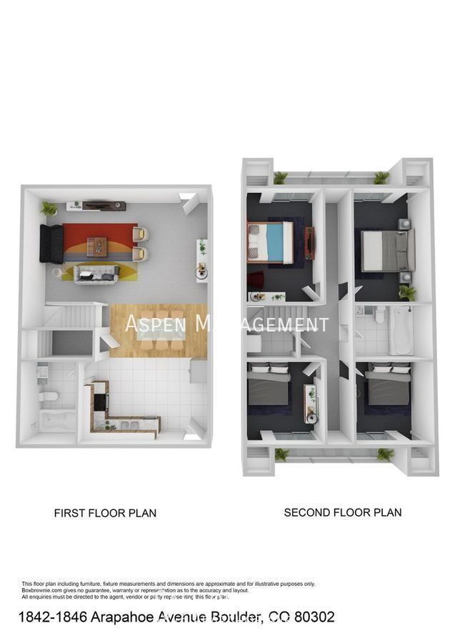 Lease Charges: Charge type Amount Fixed or Variable Description Recipient Base monthly Rent $4,600.00 Fixed Monthly Rent Owner Trash Service Provider Cost Fixed Trash removal Utility Utility Charge Provider Cost Utility Utility Utility Admin Fee $20-25 Administrative expense Broker Lease Processing Fee (Mandatory, one time/lease) $400.00 Fixed Admin Fee (initial walk through, portal, text messaging, bank fees, file storage, software, administrative, move-out walk through) Broker Security Deposit (Mandatory) $4,600.00 Deposit for potential Tenant caused damages Broker in Trust Parking (Optional) $0.00 Cost for use of parking lot Owner Pet Rent (Optional) $69.00 Rent for occupancy by a pet Owner Storage (Optional) Total $9,669.00 This 4 bedroom 2 bathroom townhouse is in a perfect location. Just 3 blocks to campus and 5 blocks to Pearl Street. The living room opens up to spacious kitchen featuring new cabinets and stainless steel appliances. Each bedroom comes with vaulted ceiling, skylight and balcony. Washer and dryer is also provided for your convenience. *No pets allowed* *Residents are responsible for all utilities* City of Boulder Rental License #RHL-0001417 Zoned for 5 unrelated occupants Portable Tenant Screening Reports (PTSR): 1) Applicant has the right to provide Aspen Management with a PTSR that is not more than 30 days old, as defined in § 38-12-902(2.5), Colorado Revised Statutes; and 2) if Applicant provides Aspen Management with a PTSR, Aspen Management is prohibited from: a) charging Applicant a rental application fee; or b) charging Applicant a fee for Aspen Management to access or use the PTSR. If Applicant provides Aspen Management with a PTSR: a) the PTSR must be available to Aspen Management by a consumer reporting agency/third-party website that regularly engages in the business of providing consumer reports; 2) the PTSR must comply with all state and federal laws pertaining to use and disclosure of information contained in a consumer report by a consumer reporting agency; and c) Applicant certifies that there has not been a material change in the information in the PTSR, including the Applicant’s name, address, bankruptcy status, criminal history, or eviction history, since the PTSR was generated.