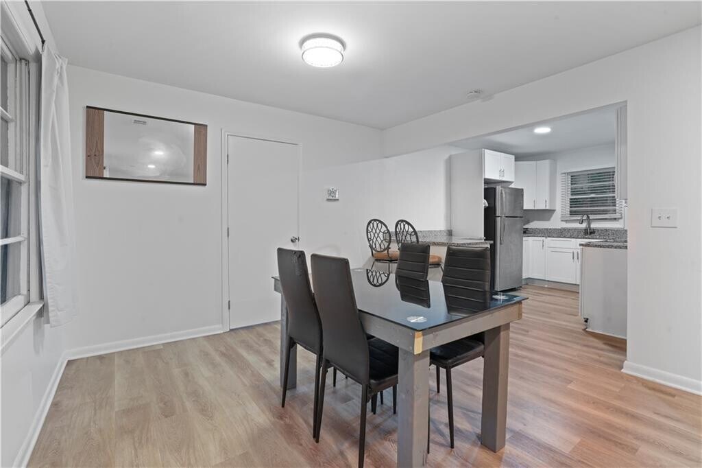 Completely updated 4-bedroom,2-bathroom white brick home in a quiet,established Austell neighborhood. This move-in-ready property features an open-concept living and dining area filled with natural light,a brand-new kitchen with white cabinets,granite countertops,and stainless steel appliances,washer,dryer included and stylish LVP flooring throughout. The private primary suite includes two closets and a fully renovated bathroom with a modern tile shower. On the opposite side,there are three spacious bedrooms and another fully remodeled bath,with one bedroom offering direct access to the large,level backyard through sliding glass doors.