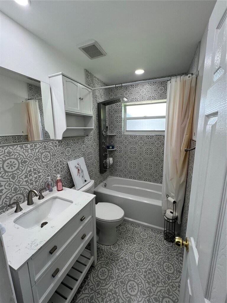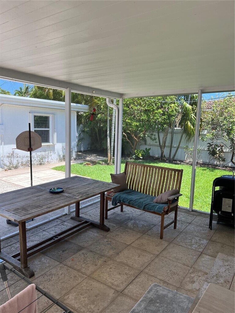 3 Bedroom 3 bath and has a screened-in lanai in the back, perfect for relaxing. House has a separate kitchen, living room, and dining room. House has been remodeled including bathrooms, kitchen and floors. Separate room for laundry. Walking distance to food markets with cooked food by the pound, fresh fruit/veg markets, bakery, specialty markets, cafes, retail stores, and restaurants and bars. Minutes from downtown Hollywood and Hallandale. Approx 10-12 minutes to the Beach and I-95, Aventura Mall, and Airport. Landscape Included.