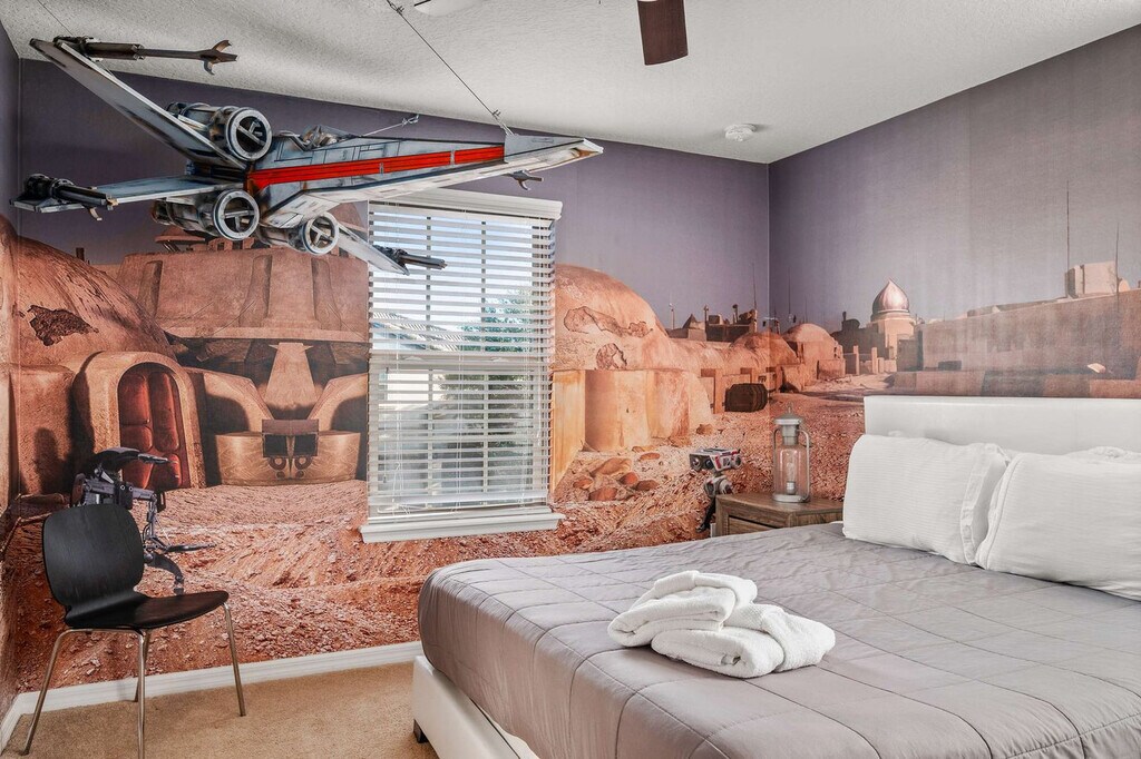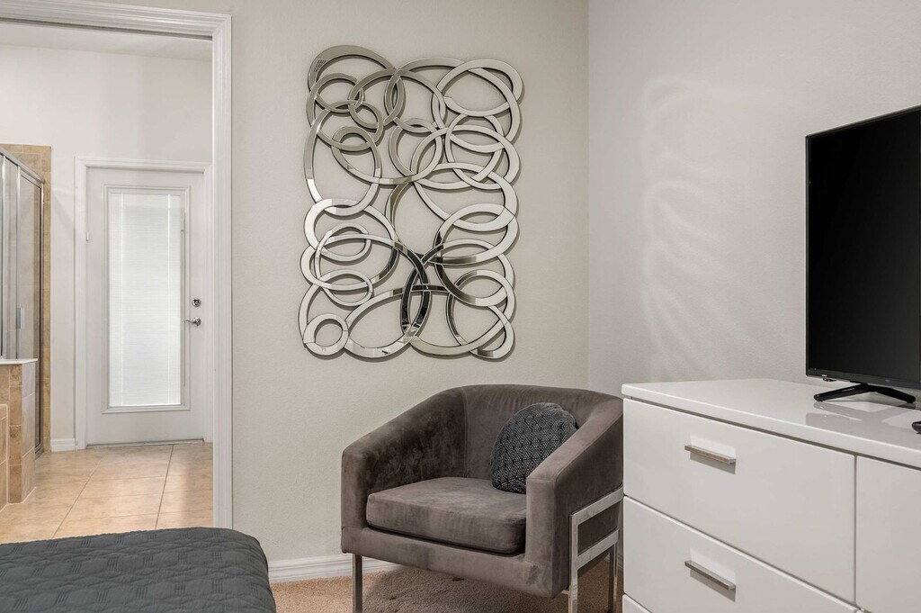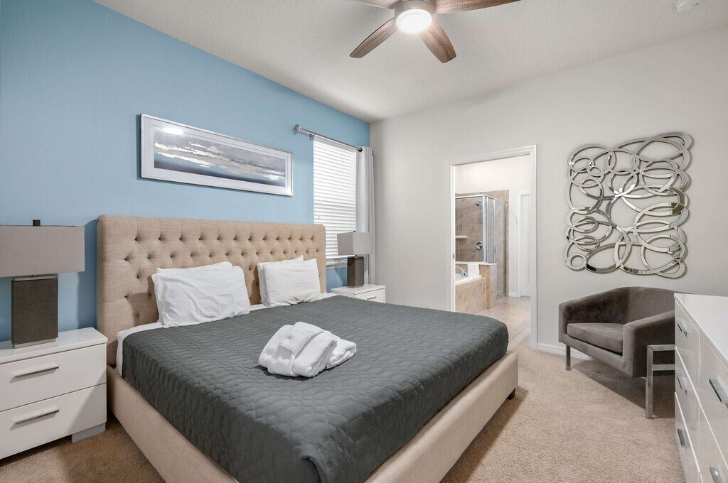 Feel at home in this amazing house in Orlando! This property features 7 spacious bedrooms and 5.5 bathrooms. This house includes 2 large living areas, a free washer/dryer, a private pool, a game room, a large full kitchen with stainless steel appliances, and spacious indoor and outdoor dining areas. It also features outdoor pool loungers. If you would like to add pool and spa heating to your reservation, please let us know in advance, and we can coordinate to set that up for you for $35 per day of stay. Located in the desirable Windsor at Westside community, this property is within walking distance of the clubhouse and its first-class amenities. Windsor at Westside Resort includes a huge resort-style pool, a lazy river, water slides, a separate splash pool, a hot tub, volleyball court, basketball court, BBQ and picnic area, and a huge clubhouse with arcades, bar and lounge, and more. The property is located off state road 192 and US 27, and near I-4, just ten miles from Disney World and Animal Kingdom. SeaWorld is 30 minutes away and Universal Studios is 35 minutes away. The resort is located within a gated community. The garage has been converted into a game room, therefore, indoor parking is not available. Parking can accommodate up to 2 vehicles in the driveway parked side to side. The maximum number of guests allowed at any given time is 12. Only the number of guests indicated on the reservation are allowed to stay overnight, unless otherwise agreed upon in written form. The number of vehicles on the property should never exceed 2 per reservation. There is absolutely no smoking and no drugs allowed inside the home or elsewhere on the property. If the temperature is set lower than 70°F, a fine of up to $500 will be incurred. A written notification from the guest and approval by the host is required to welcome up to one house-trained dog (less than 50 lbs), and a pet fee and $150 security deposit is required. Be considerate while socializing outdoors after 10pm and before 8am and keep excessive noise to a minimum during this time. No fireworks of any kind are allowed. No firearms are allowed on the property, unless kept locked in a vehicle. Check-out time is 10AM, and in the event you stay beyond the original scheduled check-out time, you may incur a fee of up to $300. The host reserves the right to terminate a reservation without refund, and/or pursue monetary fines if guests are found to be in violation of any of these rules. [SI]