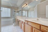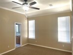 Lovely one story, Corner lot, 4-bed, 2-bath, 2-car home in the exemplary Flower Mound school district awaits your tour. Welcome to the grand formal living and dining areas right-up-front. The adjacent Kitchen opens up across the bar to the cozy den-living space with gas fireplace, dining area, and glass door access to the covered patio and backyard with approximately 14' x 20' brick stone patio and ceiling fan. The transition to Stainless Appliances lack a new gas oven-range, however the white one still works great. The fourth bedroom has French doors near the entryway, so it can conveniently be used as an office or library. This bright, open home has large living areas and the oversized master bedroom also has direct patio access, ensuite, and huge closets. All bedrooms have ceiling fans and large closets. Come visit your new home - She's Move-in Ready! **We look for 600+ Credit Score, 2 -3 Times Rent as Income, and Clean Background Checks Required**.