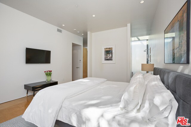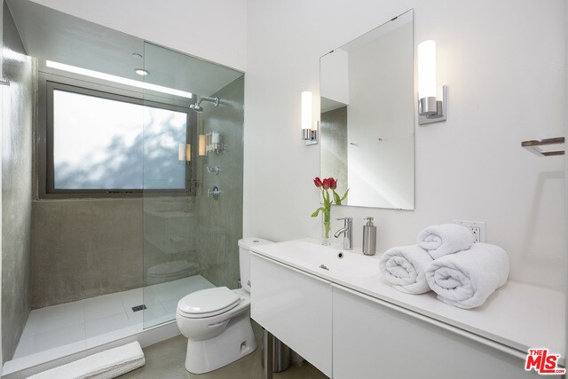 Sleek contemporary architecture meets warm & luxurious CA living in this spectacular fusion of glass, wood, concrete & steel. Dazzling front unit in 2010 constructed one-of-a-kind 2-unit duplex. 2 BR/2.5BA plus den/office private haven, perfect for entertaining. Loft-like 12' ceilings in main area, fabulous indr/outdr flow to the private patio. State of the art chef's kitchen w/ bfast bar, walk-in pantry, custom stone cntrps & s/s appls,. Primary ba w/ dbl sinks, ample storage, skylight over shower. Incredibly spacious custom primary double closet. Open 2nd bdrm/library/office w/ blt-ins w/ access to interior patio. Upstairs lndry rm w/ washer/dryer & utility closet.Fabulous 360-degree Century City views from furnished & landscaped rooftop deck equipped w/outdoor frplc, bbq, wet bar & 4-stop dumbwaiter to all levels of unit. 2 sxs secured pkg. Ideal Century City proximity to shops, theaters, restaurants & offices. MLS# 25617671