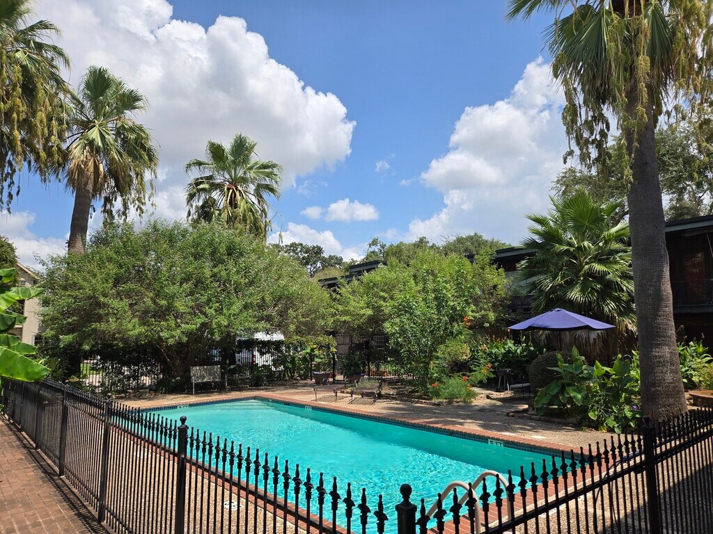 Wonderful unit in a gated community located in the Montrose / Upper Kirby area. The open concept kitchen and living room create a spacious living area where you can really stretch out. There is plenty of natural light in both the living area and bedroom given the large windows in each room. The kitchen offers plenty of counter space and storage. The bedroom has two closets. Fridge,washer,and dryer included! Imagine relaxing in the pool and the tropical oasis that surrounds it. You can park 2 cars tandem in the assigned parking spot. Located within walking distance to Trader Joe’s,HEB,West Alabama Ice House,and Target plus minutes to Downtown,UH,University of St. Thomas,and the Medical Center. MLS# 69416534