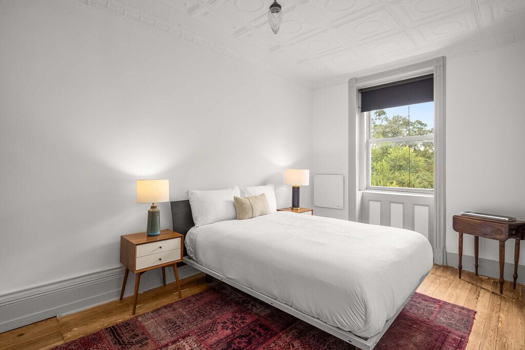 Feel at home in this 1,000+ sq ft, 2-bedroom loft nestled in a landmarked 19th-century merchant's house in the heart of the Lower East Side. Located directly across from Seward Park, this walk-up apartment requires climbing a few flights of stairs and features oversized windows, 10' ceilings, and designer furniture, offering historic NYC charm. This loft offers two bedrooms, a full walk-in kitchen, a washer-dryer, and separate living and dining rooms. The space also offers ample closet space and a fully stocked kitchen. Located in the heart of the Lower East Side, this apartment is directly across from Seward Park. Smoking is not allowed on the property. Excessive use of A/C (exceeding $250/mo) will be billed back to guests after move-out. Includes blazing-fast Wi-Fi and a dedicated workspace, providing the perfect set-up for remote work. [SI]