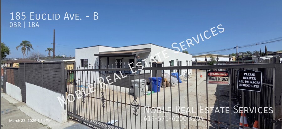 1495.00 Dogs OK Cats OK Pets Ok. (Breed Restrictions Apply) No Yes Deposit: $1495 **On Approved Credit** Remodeled 1-bedroom studio in a duplex. This unit features all new fixtures, paint, cabinets, and new carpet ready for move-in! Includes 2-car allowable parking in the backyard area. No washer/dryer. Mini-split A/C unit included. **FOR SHOWING, PLEASE OPEN UNLOCK GATE . FRIENDLY DOG PLEASE DON'T LET IT OUT OF THE GATE** 1 YEAR LEASE TENANT PAY FOR 30% OF THE WATER BILL TENANT PAYS FOR SDGE TRASH INCLUDED WITH RENT (**If no showtimes are available, don’t worry! Go ahead and submit your info and our automated system will let you know when showtimes become available). Also, please be sure to click on the 'Apply Now' button to see all of our requirements and how we work!ss 03/26/26 (yc) No Noble Real Estate Services www.NobleProperties.info 1371 Presioca St. Spring Valley CA 91977 1495 Yolanda, Emily Or Alex option 1 2026/3/26 Bathroom Kitchen Stove