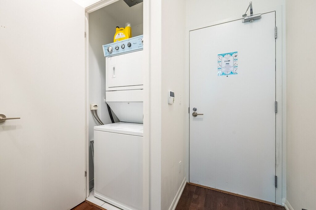 Feel at home in this amazing 1-bedroom apartment located in a boutique building in the heart of trendy Downtown Toronto. This bright unit has floor-to-ceiling windows and an open concept layout. This comfortable suite has everything you need to make you feel right at home. It features high-end furniture chosen by an award-winning interior designer, a fully functional kitchen with supplies such as tea, coffee, a kettle, coffeemaker, and toaster, and a bathroom with towels, shampoo, conditioner, body wash, a hair dryer and other toiletries. A washer and dryer with supplies are also available. Paid underground parking with in/out privileges is available upon request for $10 per night. Please request in advance as it could be booked. Pets are allowed for a fee of $10 per pet per night. A travel crib (for baby 0-18 months) and bed rails are available for $5 per item per night. Please book in advance. Guests have access to the gym, indoor pool, hot tub and sauna in the building. The apartment is located steps away from Toronto's best restaurants, shops, and entertainment. According to the condo rules, information about guests must be provided to the condo management prior to their arrival, including each guest's name and ID details, and vehicle and license plate numbers (if parking is required). Guests whose names or ID do not match the information given are not allowed into the building. Guests must be 18 or over in order to check in. [SI]