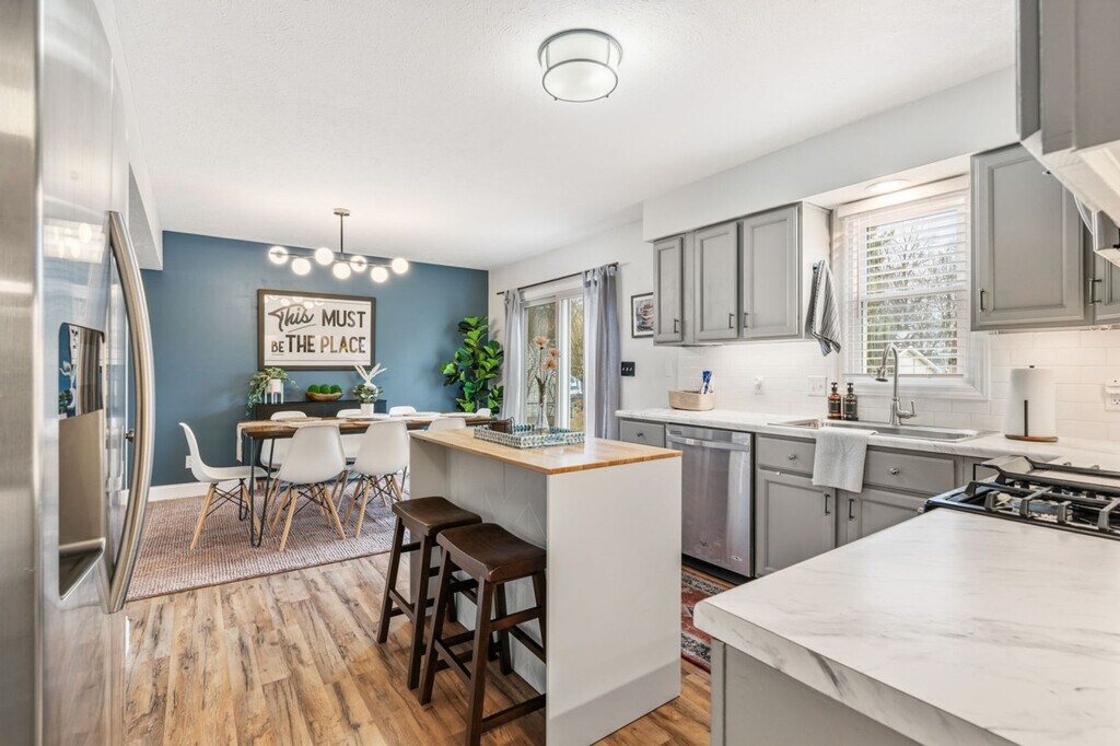 Feel at home in this spacious and well-equipped home in Northfield, Ohio, just minutes from MGM Northfield Park. This home is perfect for families, groups, or a fun weekend escape with friends. The main level features a large, inviting living room with a comfortable sectional and Smart TV. The dining room seats 8, making it easy to enjoy meals together, while the open kitchen includes an island with seating for 2 and everything you need to cook and entertain. There is a coffee area with a Keurig machine, coffee syrups, K cups, sugar, and creamer provided. A full bathroom with a walk-in shower is located on this floor, with the laundry room conveniently attached. The basement is all about fun, featuring a foosball table, Pac-Man arcade game, basketball hoop game, TV, and plenty of seating. Step outside to the patio and unwind in the 7-person hot tub or fire up the gas grill for an easy outdoor meal. The convenient garage allows for 2 cars and has a Tesla charger available for use. Pets are welcome with a flat fee of $125 for a maximum of 2 dogs. Requests for a 3rd or 4th dog are subject to approval and an additional $100. With a prime location near MGM Northfield Park, this home offers comfort, fun, and convenience. Absolutely no parties are allowed. Excessive noise may result in a $500 fine. No smoking is allowed inside the house, and there is a $500 fine for violation. Undisclosed pets will result in a $150 fee and may lead to cancellation without refund. No cats are allowed. The primary bedroom has a dedicated desk, perfect for remote work or planning your day. This property is equipped with a grill, guests are responsible for refilling the propane tank if needed, but you will be reimbursed with a receipt. [SI]