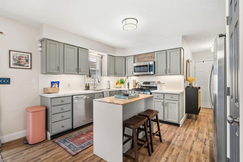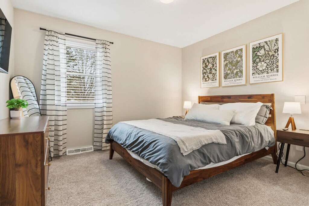 The advertised rate of $5,100/month is the lowest available price, based on a 1 month(s) stay with a move-in date of April 6, 2026. Rates vary depending on the duration of stay, season, and other parameters. For exact pricing and additional pricing components, please visit our website and enter your desired move-in and move-out dates. The rate is applicable when billed upfront; it can be higher if billed in multiple payments. Bring the whole family to this spacious Northfield home, offering 4 bedrooms and 2 full baths, minutes from MGM Northfield Park. Feel at home in the large living room, dining area, open kitchen, basement game room, and patio with a hot tub and gas grill. The main level features a large, inviting living room with a comfortable sectional and Smart TV, ideal for relaxing after a day out. The dining room seats 8, making it easy to enjoy meals together, while the open kitchen includes an island with seating for 2 and everything you need to cook and entertain. There is a coffee area with a Keurig machine, coffee syrups, K cups, sugar, and creamer provided. A full bathroom with a walk-in shower is located on this floor, with the laundry room conveniently attached. The basement is all about fun, featuring a foosball table, Pac-Man arcade game, basketball hoop game, TV, and plenty of seating—great for game nights and downtime. Step outside to the patio and unwind in the 7-person hot tub or fire up the gas grill for an easy outdoor meal. The convenient garage allows for 2 cars and has a Tesla charger available for use. Pets are welcome with a flat fee of $125 for a maximum of 2 dogs. Requests for a 3rd or 4th dog are subject to approval and an additional $100. With a prime location near MGM Northfield Park, this home offers comfort, fun, and convenience for your next stay. Absolutely no parties are allowed. Excessive noise may result in a $500 fine. Smoking inside the house is prohibited and will incur a $500 fine. Undisclosed pets will result in a $150 fee and may lead to cancellation without refund. No cats are allowed. A hot tub cleanliness fine of $250 may be assessed for failure to shower before entering the hot tub, using bath towels instead of beach towels, having unsupervised kids, diving or jumping, bringing food or drink into the hot tub, having glass in or near the hot tub, failing to keep the hot tub clean and clear, making excessive noise, smoking in the hot tub, failing to turn off the jets after use, failing to cover the hot tub after use, putting pets in the hot tub, turning off the hot tub, or adding any chemicals, chlorine, bromine, essential oils, bath products, or hot tub scents without the partner's knowledge and approval. The primary bedroom features a dedicated desk, perfect for remote work or planning your day. [SI]