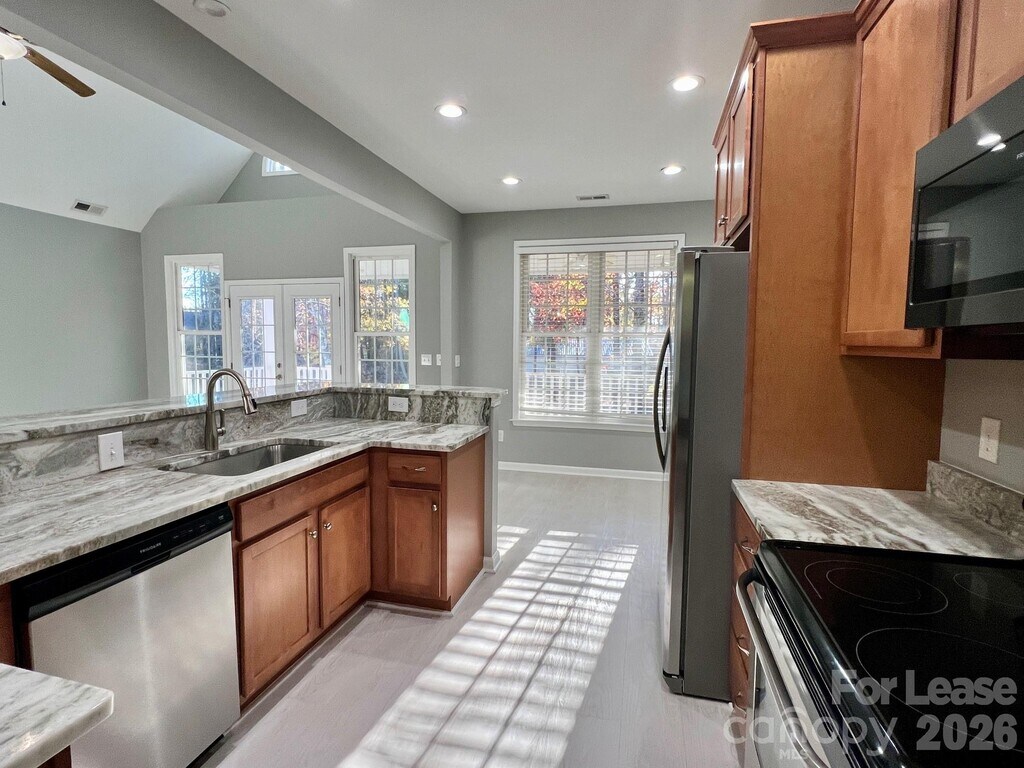 Well maintained RANCH home near Lake Norman in Mooresville! The open floor plan has a main level with NO CARPET,vaulted Living Room,Formal Dining,Kitchen with stainless appliances and Breakfast nook and Laundry Closet. The Primary Bedroom Suite is tucked away and has a large walk-in closet and Bathroom with dual sink vanity. The secondary Bedrooms share a 2nd Full Bathroom. The Bonus Room over the Garage is perfect for a Playroom or Home Office. Enjoy an oversized Covered Deck with steps down to the Fenced Backyard and a Front Covered Porch. There is ample parking in the driveway and garage and an area to accommodate one trailer or camper. This home has a convenient location off Brawley School Rd to schools,shopping and to the boat launch at Hagers Creek Access Area about 2 miles down the road. Tenant is responsible for all utilities,lawn maintenance and garbage pickup. Tenant will maintain the lawn to the backyard fence and the homeowner will maintain the lawn behind the fence. The building behind the house is not part of the rental and belongs to the homeowner. No Smoking and 2 Pets each under 35-lbs are conditional with a non-refundable pet fee. AVAILABLE NOW! MLS ID CAR4353802