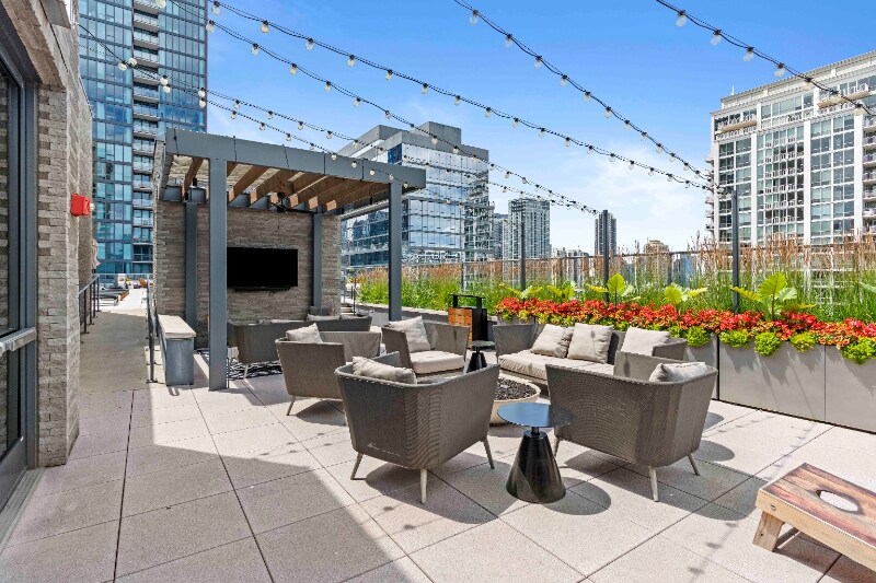 Property Id: 2398047 The industrial-chic, loft-style apartments at this River North property are decked out with luxury finishes and “tech-ed” out with smart home features. The Merchandise Mart, Chicago Riverwalk, galleries, fine dining, and energetic nightlife are all just steps away. Inside each unit, you’ll see a marriage of modern city styling with advanced technology. High exposed concrete ceilings and wide plank wood floors are mixed with designer kitchen cabinetry, quartz countertops, herringbone tile backsplash, stainless steel appliances, custom light fixtures, floor-to-ceiling windows, and a balcony. On top of all of that, there’s the smart home technology package featuring Lutron lights and shades, and a Honeywell thermostat. This boutique apartment community filled the amenity spaces with top-notch goodies. There is a full fitness studio with a flexible yoga/barre space, Peloton bikes, and weights. When it’s time to relax and socialize, enjoy the outdoor rooftop lap pool, grilling stations, and fire pits. There’s also a community lounge with gaming tables, and a dog run and pet wash with owner’s lounge. Cats and dogs are welcome and garage parking is available with additional fees.