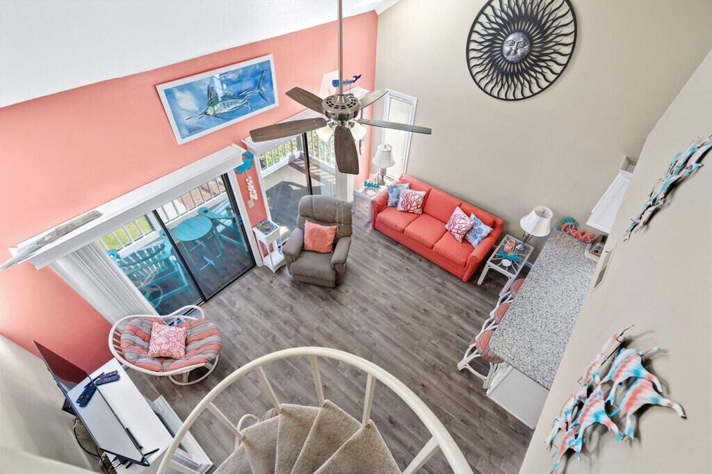 The advertised rate of $3,015/month is the lowest available price, based on a 30 day(s) stay with a move-in date of October 10, 2026. Rates vary depending on the duration of stay, season, and other parameters. For exact pricing and additional pricing components, please visit our website and enter your desired move-in and move-out dates. The rate is applicable when billed upfront; it can be higher if billed in multiple payments. Relax and feel at home in this family-friendly apartment at Golf Colony Resort in Surfside Beach, just 1.5 miles from the beach. This is the perfect spot for a convenient and memorable coastal getaway. This apartment features an open-plan living and dining area and a fully equipped kitchen. The main-floor primary bedroom includes a comfortable queen-size bed and is conveniently located near a full bathroom with a tub/shower combo. Upstairs, the loft suite offers two queen beds and a private en-suite bathroom, also with a tub/shower combo. Both bedrooms are equipped with 40+ inch smart TVs with premium cable and streaming services, and the living room boasts a 55-inch Roku smart TV. Stay connected with high-speed Wi-Fi offering speeds of 125+ Mbps. Linen service, including linens for all beds, bath towels, hand towels, and washcloths, is available for an additional fee of $50 for your stay. Uber and Lyft are readily available for transportation, with rides typically costing around $20-$25 to reach the property. A gas-powered golf cart is a great option for exploring Surfside Beach and the surrounding area during the day. Golf Colony Deerfield is a centrally located, quiet, and comfortable resort in the heart of Surfside Beach, close to many great options. Just 1.5 miles from the closest Surfside Beach access, you can reach almost anywhere on the South Strand in under 15 minutes. Myrtle Beach International Airport is a quick 15-minute drive away. Quiet hours are between 11 pm and 7 am as per Surfside Beach ordinance. Please consider your neighbors and keep noise at a reasonable level. Check-out is at 10 AM. Must be 23 or older to book. No smoking and no pets are permitted. A fine may be applied if entry is refused for routine pest control treatment. Property is allowed 2 parking spaces. All others must park in overflow parking next to tennis courts on Auburn Lane. [SI]