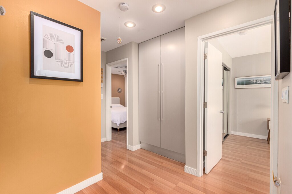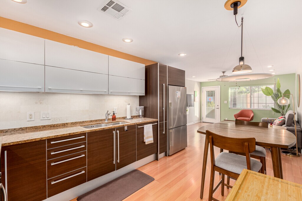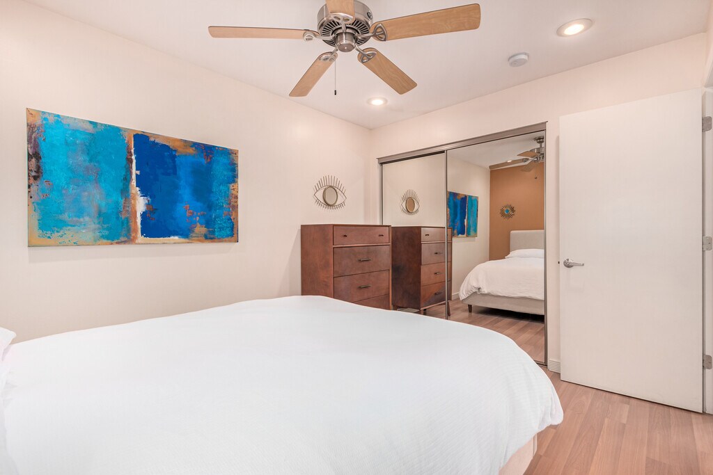 This hidden gem is nestled in a quiet yet trendy Phoenix neighborhood. It is within two miles of Trader Joes, Sprouts, Whole Foods, Target, Life Time Fitness, LA Fitness, and countless restaurants and coffee shops. Nearby you will find hiking trails, a family park just down the street, and the famous Phoenix canal right behind the community, perfect for walking and biking. The Patio 71 community is peaceful, friendly, and filled with amenities. The unit itself has a mid-century modern flair with quality appliances, including a brand-new washer and dryer. The kitchen is stocked with high-end cookware and plenty of dishes. Storage is abundant throughout the home, including an outdoor storage room. Both front and back patios feature beautiful flowers and plants, kept vibrant by an automatic drip system. Inside, there are two comfortable queen bedrooms, each with its own dresser and set of linens. Fast WiFi and a Smart TV make it easy to stay connected and entertained. For remote workers, the home includes a dedicated workspace designed for productivity, privacy, and focus. For traveling nurses, the location is ideal because it is just minutes from the 51 Freeway, providing quick access to hospitals across the Valley. For snowbirds, it is the perfect retreat. The home is quiet and relaxing when you want to unwind, yet close to Scottsdale, downtown Phoenix, and everything that makes Arizona winters so enjoyable. This rental was created with a lot of love, and we hope the tenant who stays here enjoys it just as much as we do. Our prices include all fees. No hidden fees.